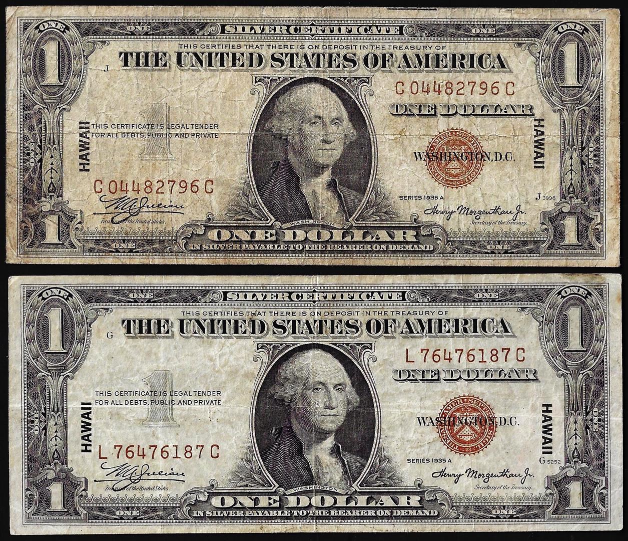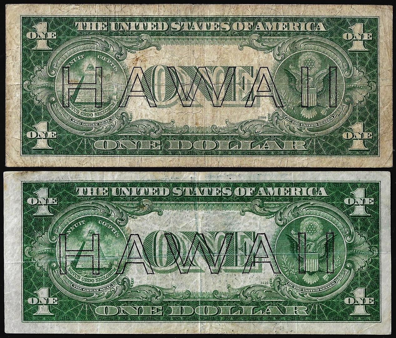 Lot of (2) 1935A $1 Hawaii WWII Emergency Issue Silver Certificate Notes