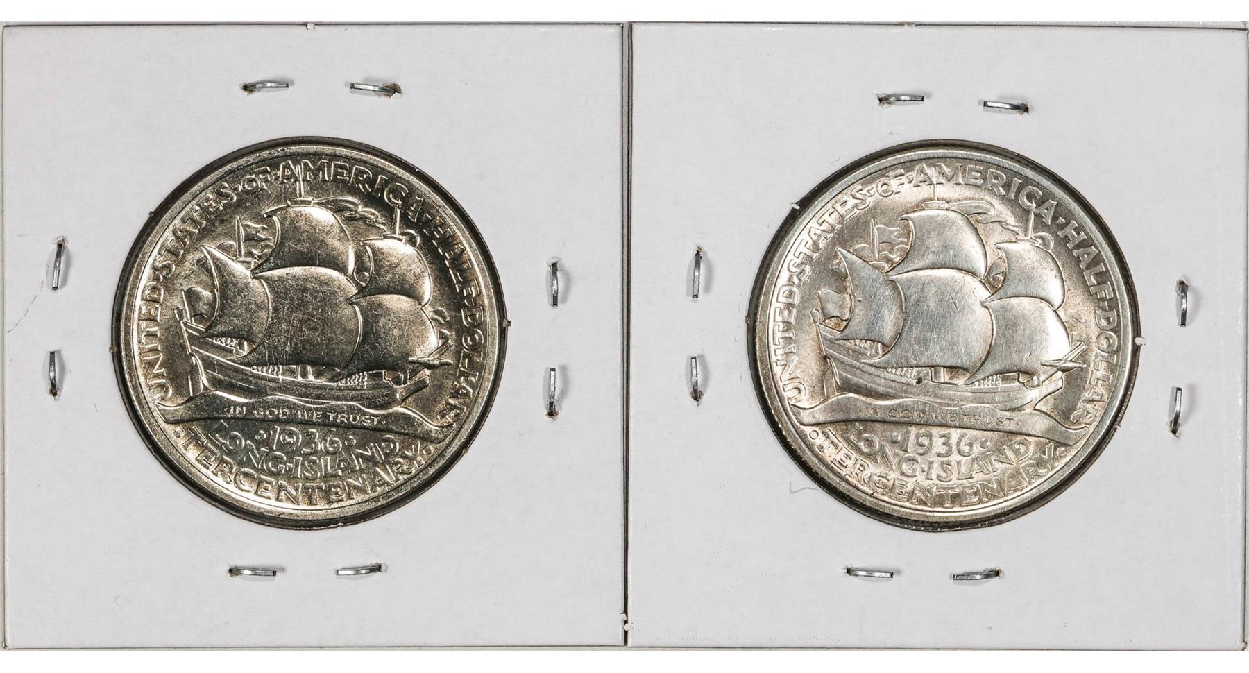 Lot of (2) 1936 Long Island Tercentenary Commemorative Half Dollar Coins