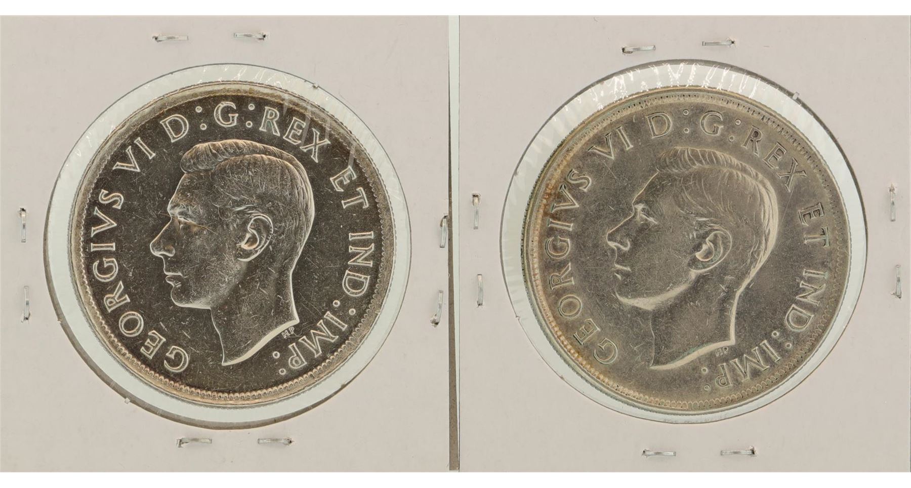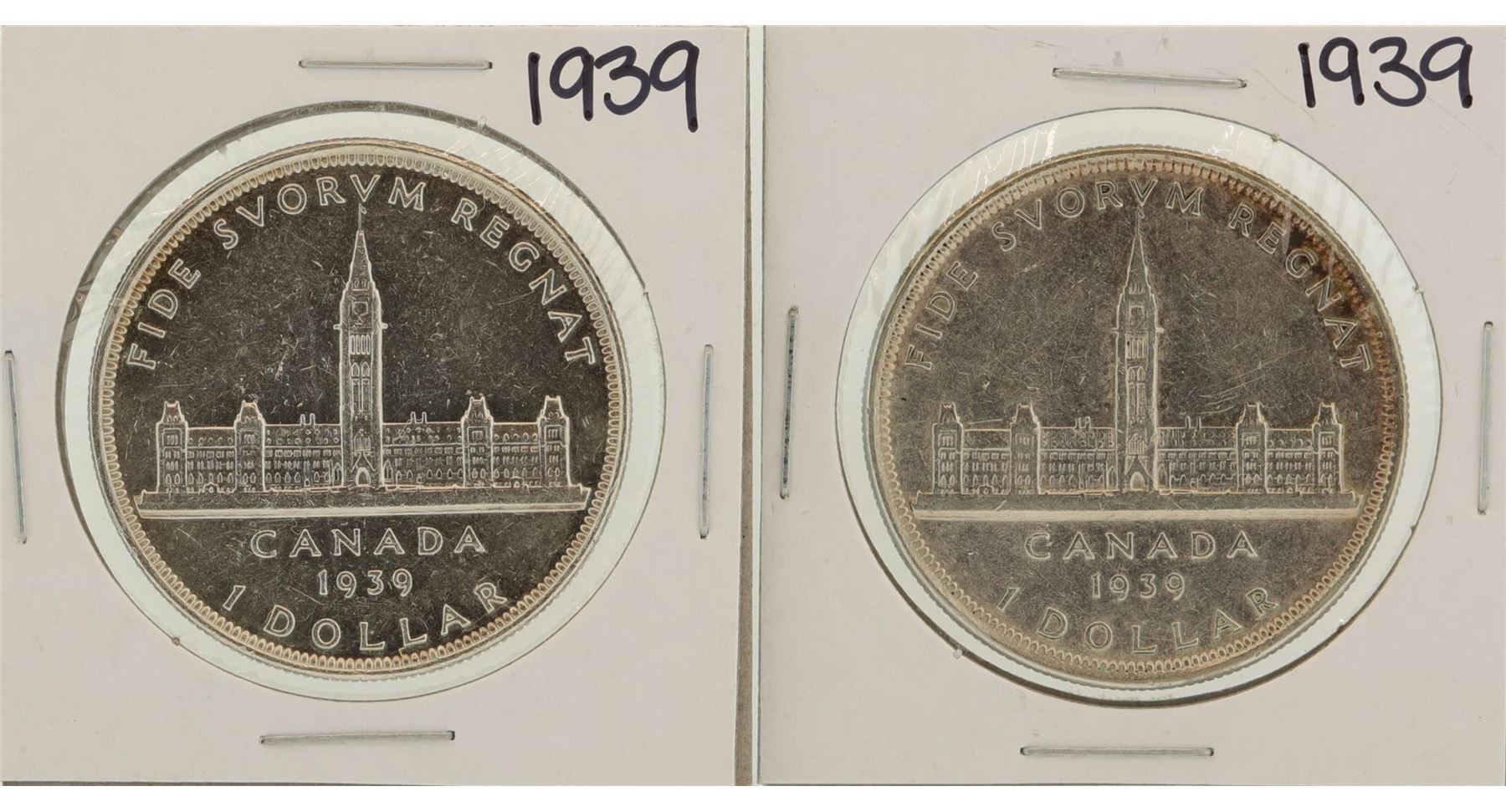 One Lot of (2) 1939 $1 Canada Silver Dollar Coins.