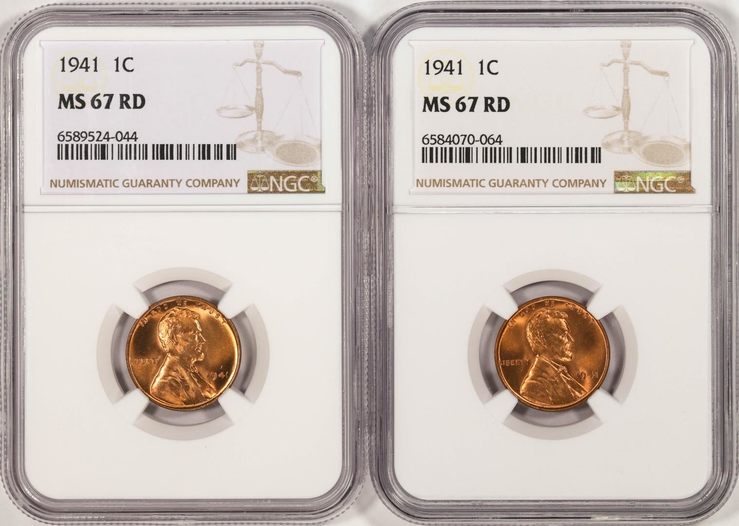One Lot of (2) 1941 Lincoln Wheat Cent Coins NGC MS67RD. NGC Certified.