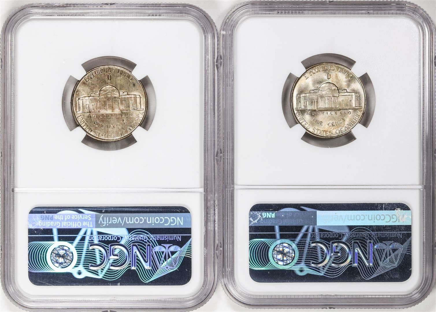 One Lot of (2) 1943-D Jefferson Nickel Coins NGC MS66 5FS. NGC Certified.