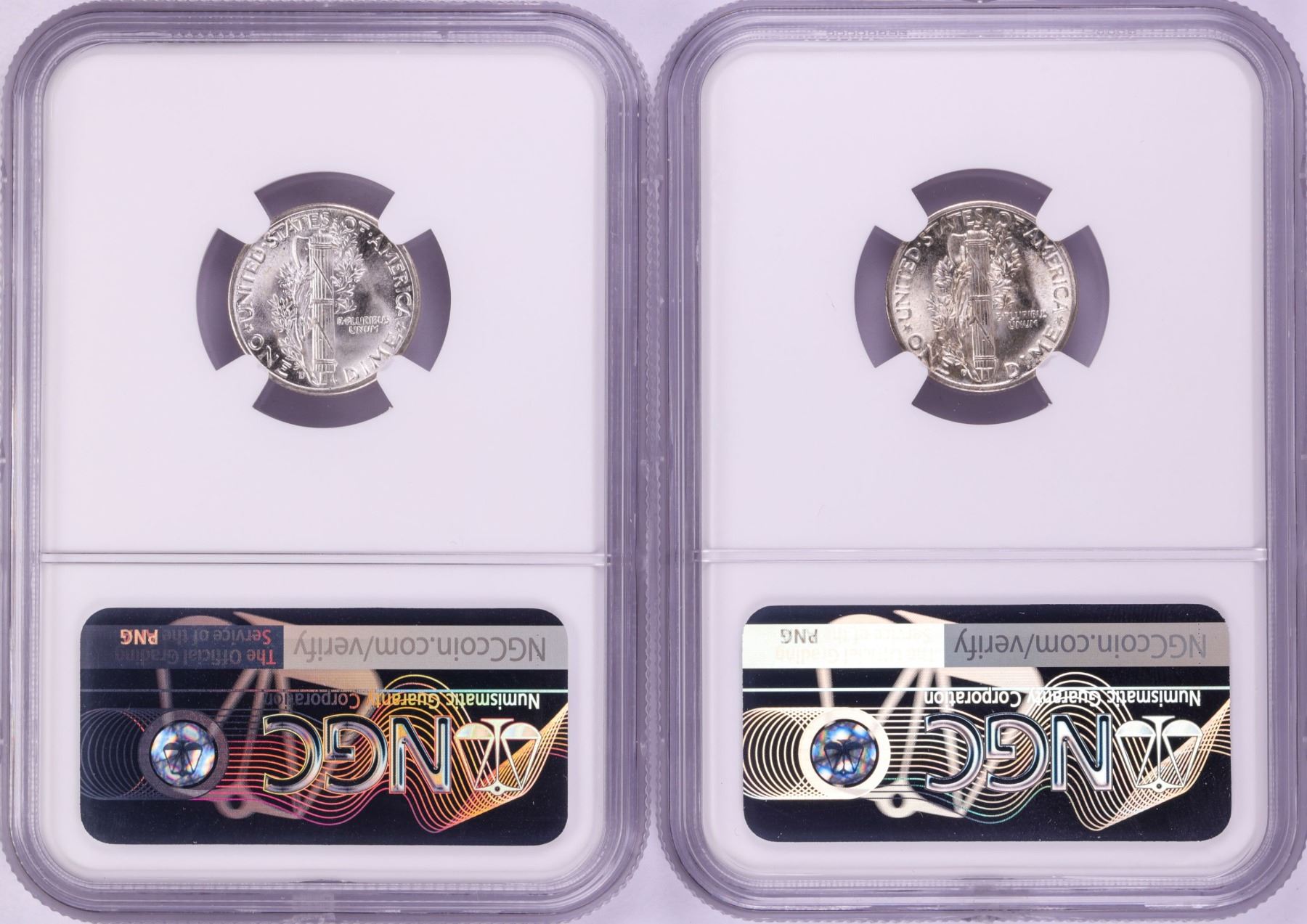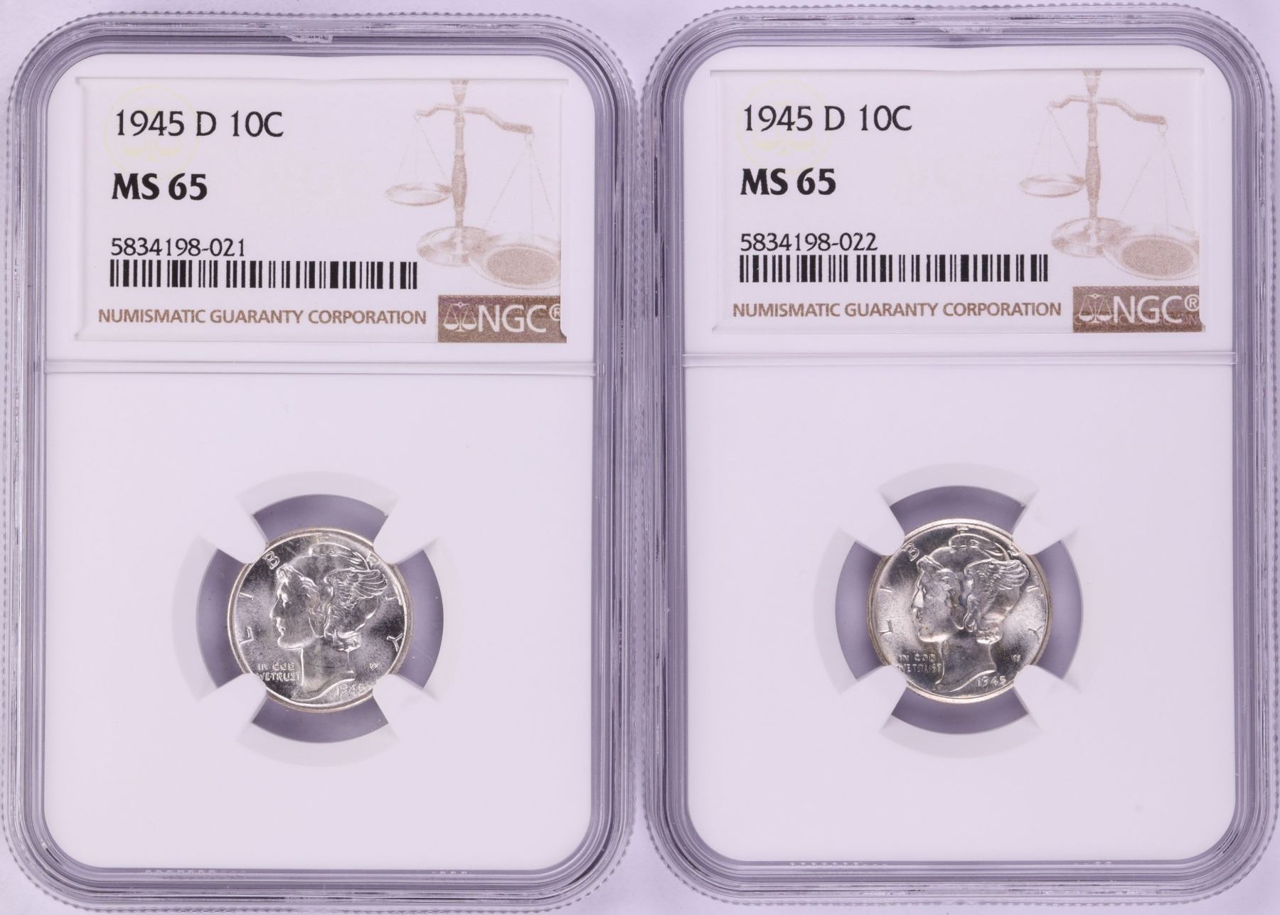 One Lot of (2) 1945-D Mercury Dime Coins NGC MS65.