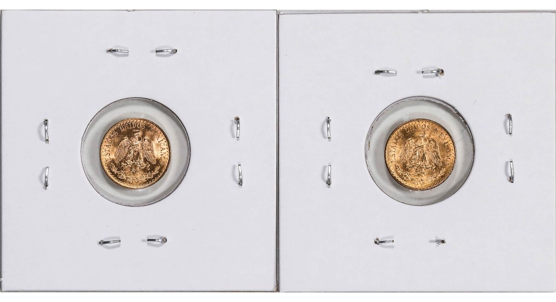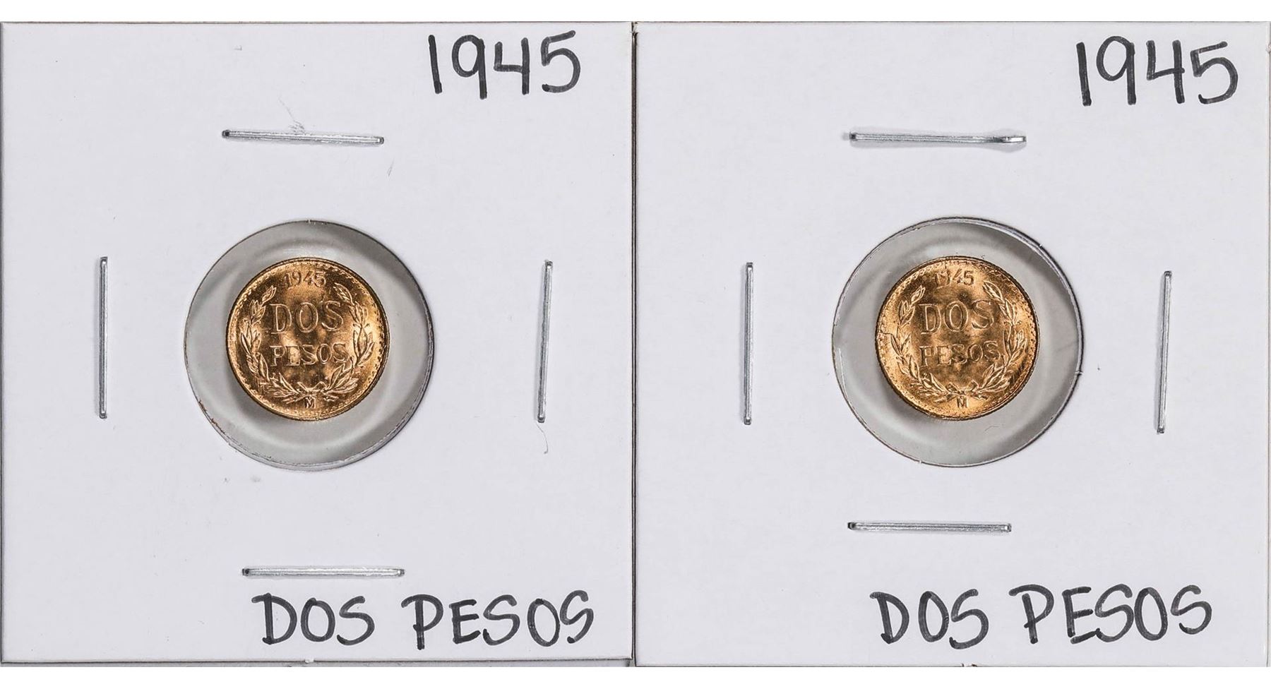 One Lot of (2) 1945 Mexico Dos Pesos Gold Coins.