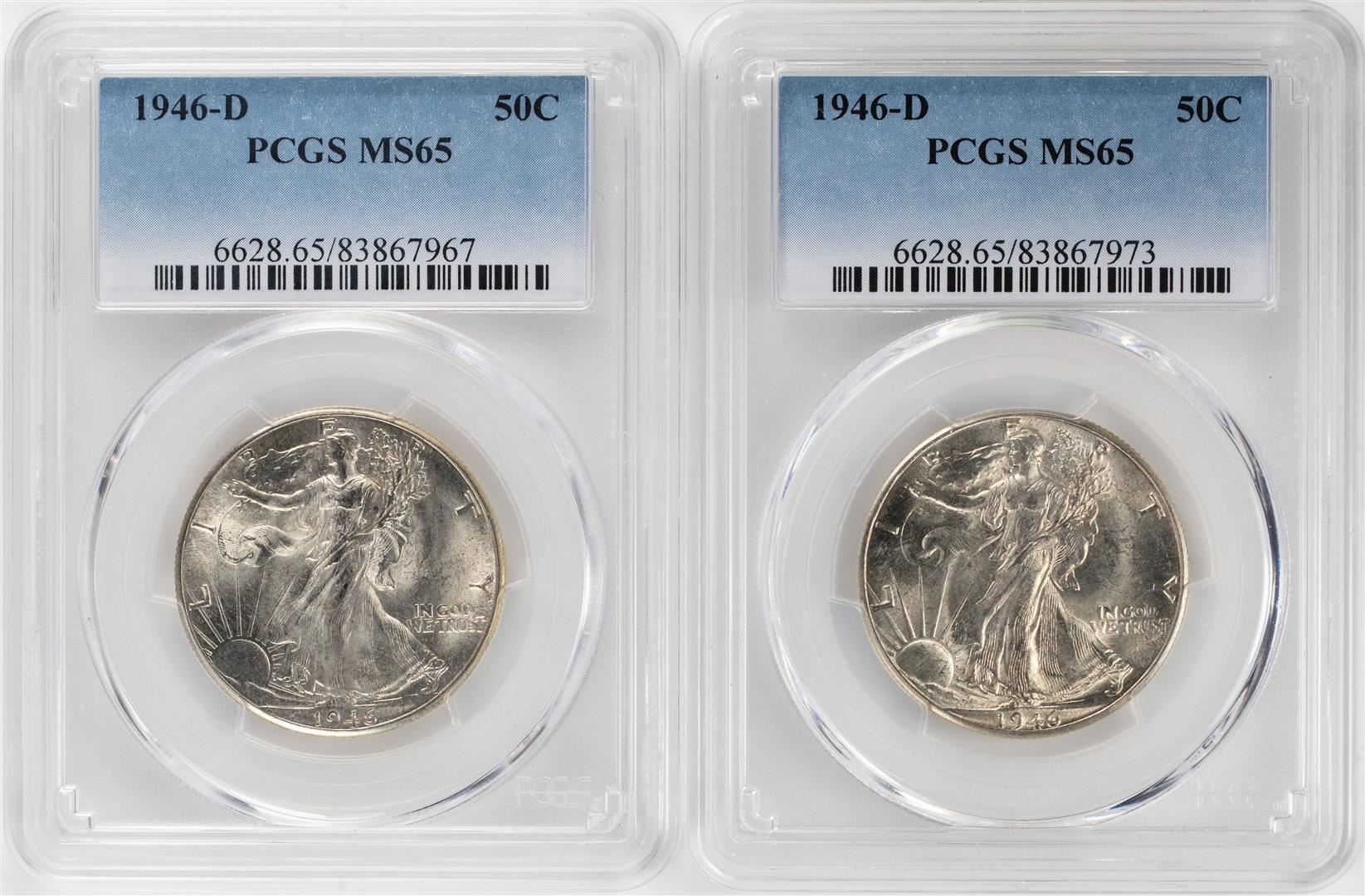 Lot of (2) 1946-D Walking Liberty Half Dollar Coins PCGS MS65
