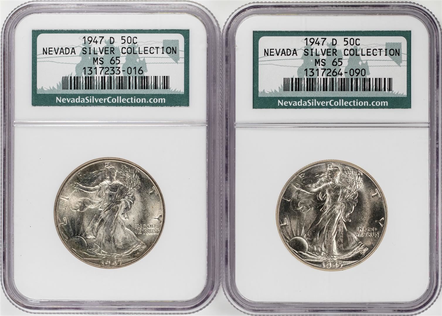 One Lot of (2) 1947-D Walking Liberty Half Dollar Coins NGC MS65. NGC Certified.