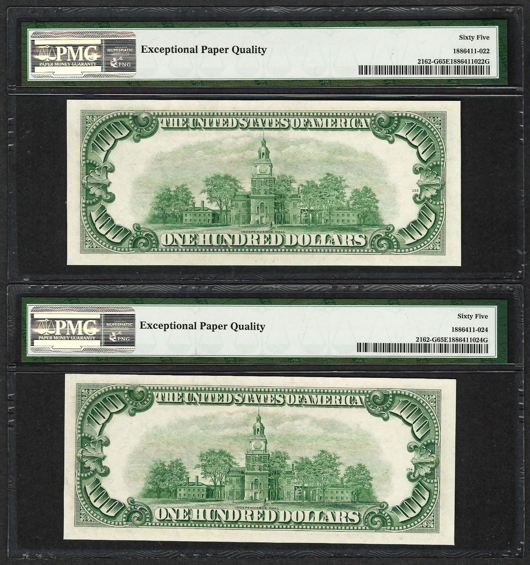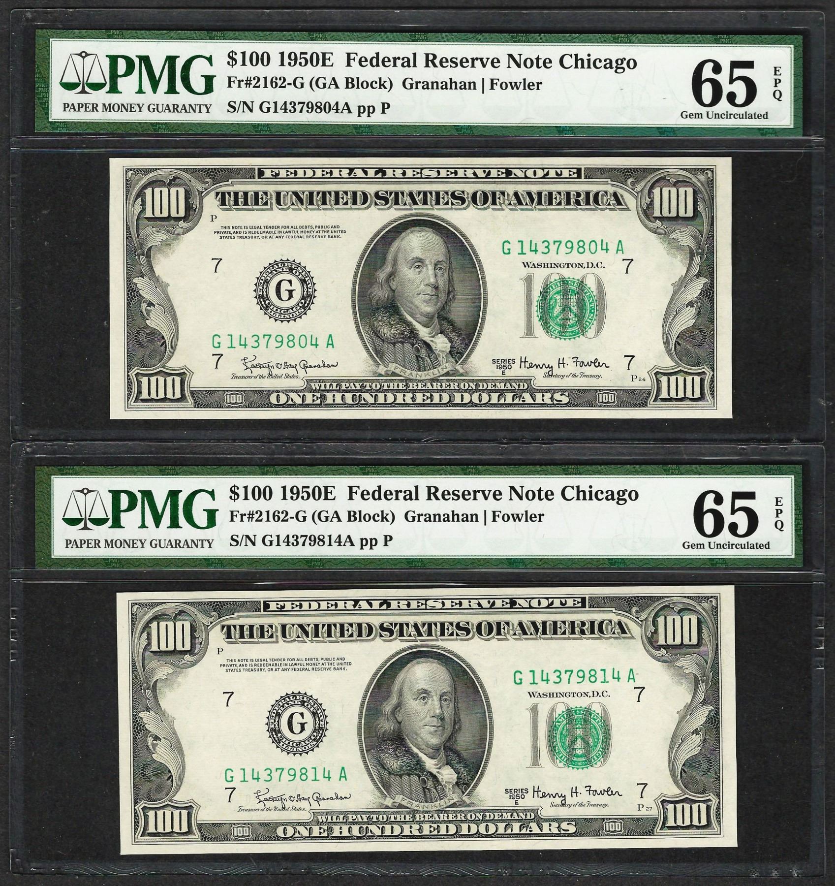 Lot of (2) 1950E $100 Federal Reserve Notes Chicago PMG Gem Uncirculated 65EPQ