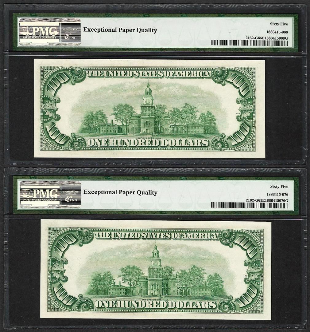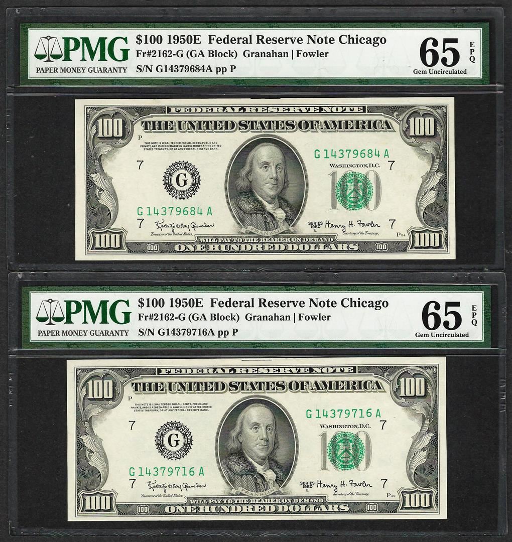 Lot of (2) 1950E $100 Federal Reserve Notes Chicago PMG Gem Uncirculated 65EPQ