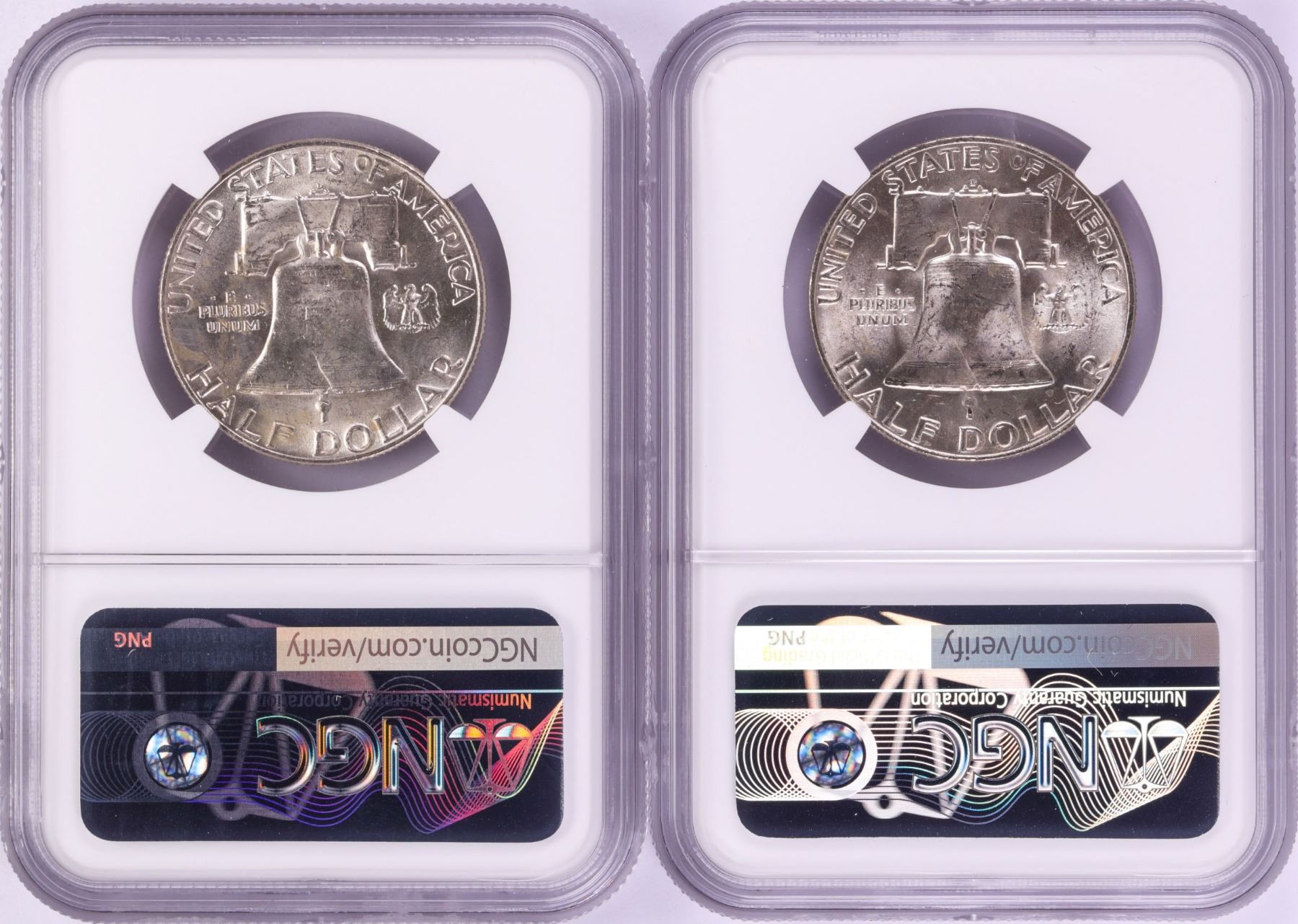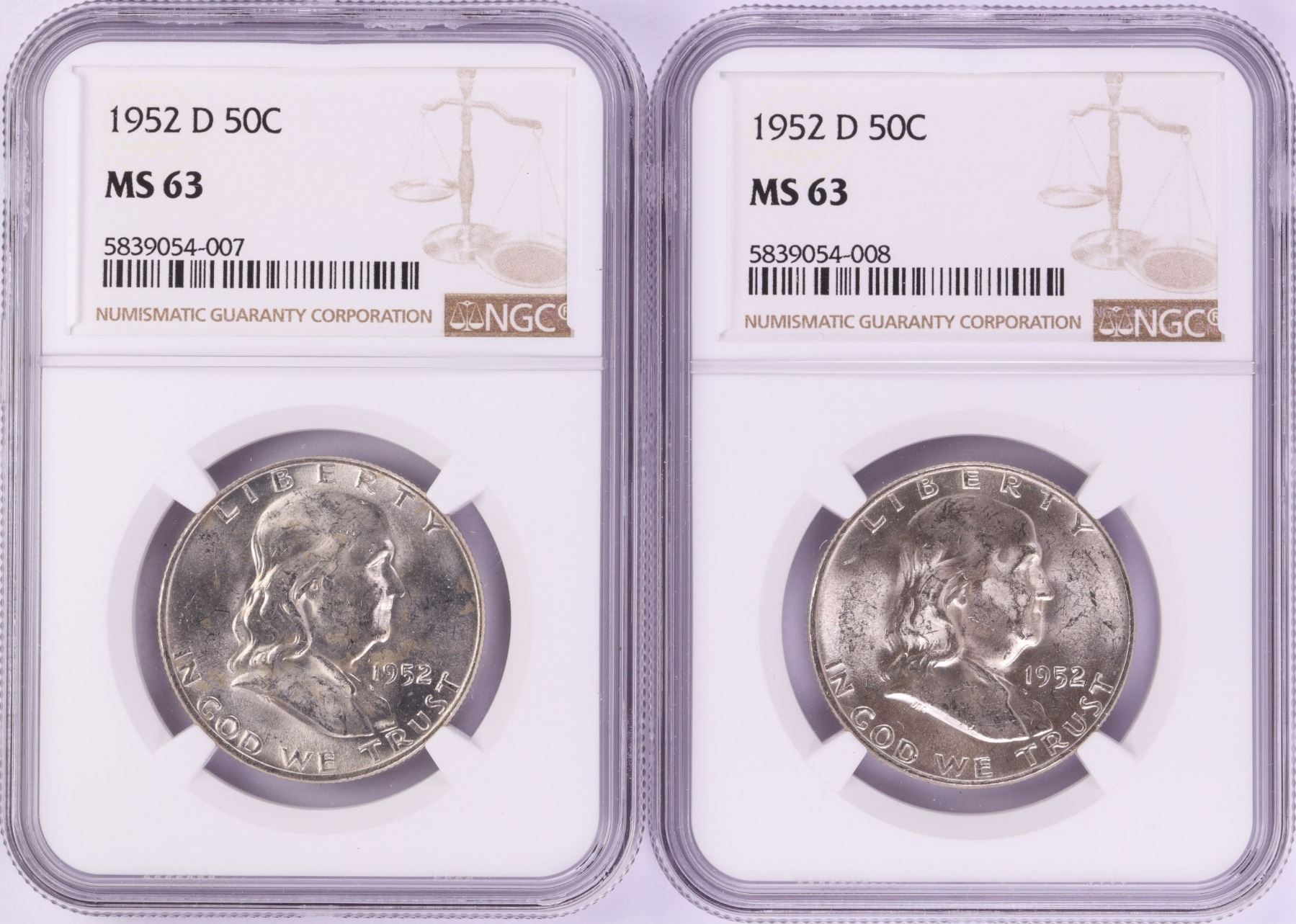 One Lot of (2) 1952-D Franklin Half Dollar Coins NGC MS63.