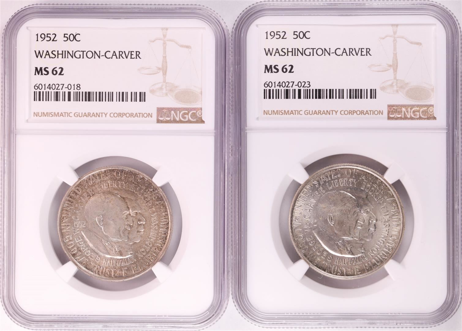 Lot of (2) 1952 Washington-Carver Commemorative Half Dollar Coins NGC MS62