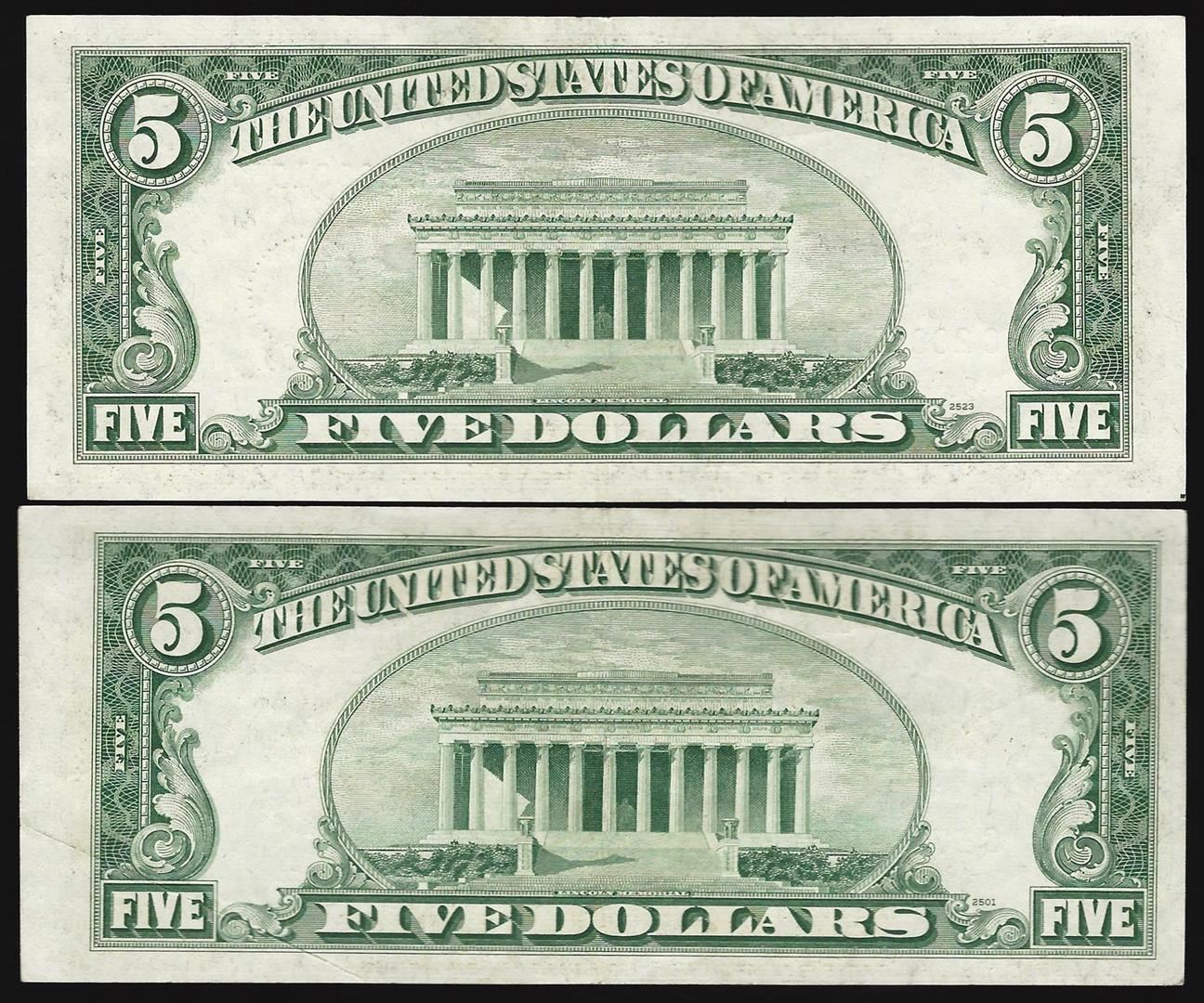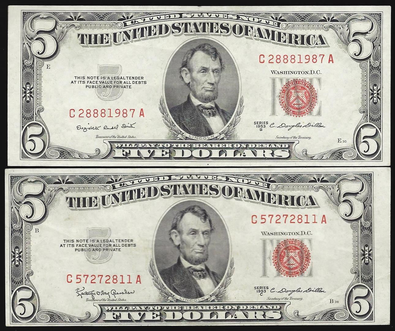 One Lot of (2) 1953 $5 Legal Tender Notes.