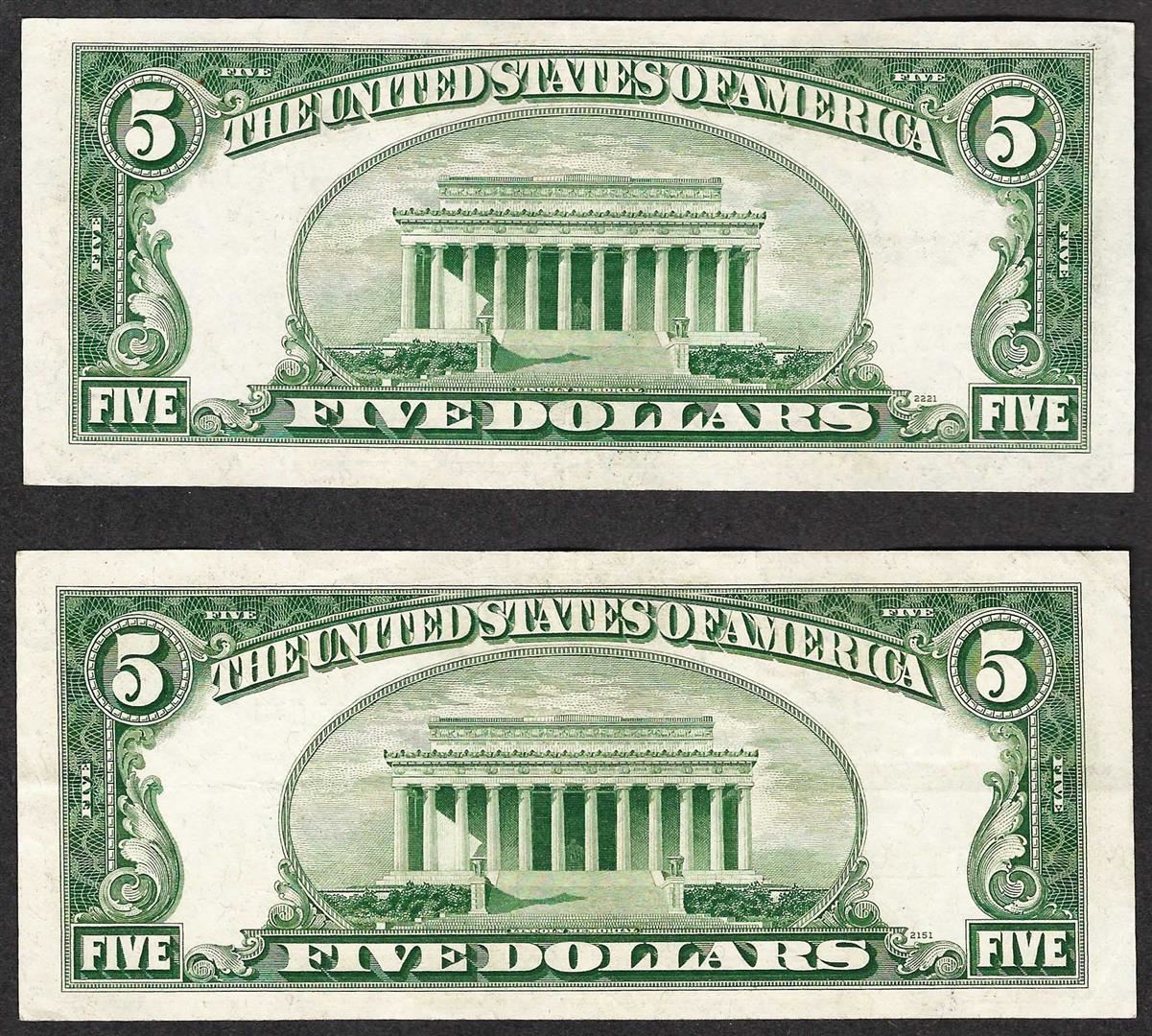 One Lot of (2) 1953 $5 Silver Certificate Notes.