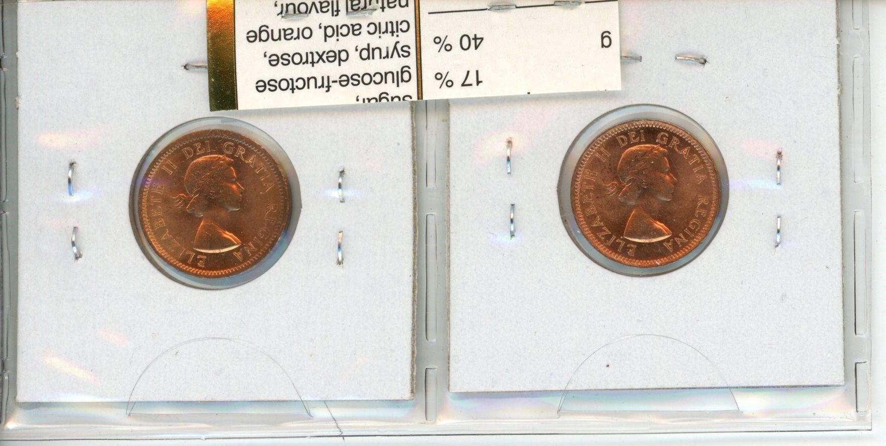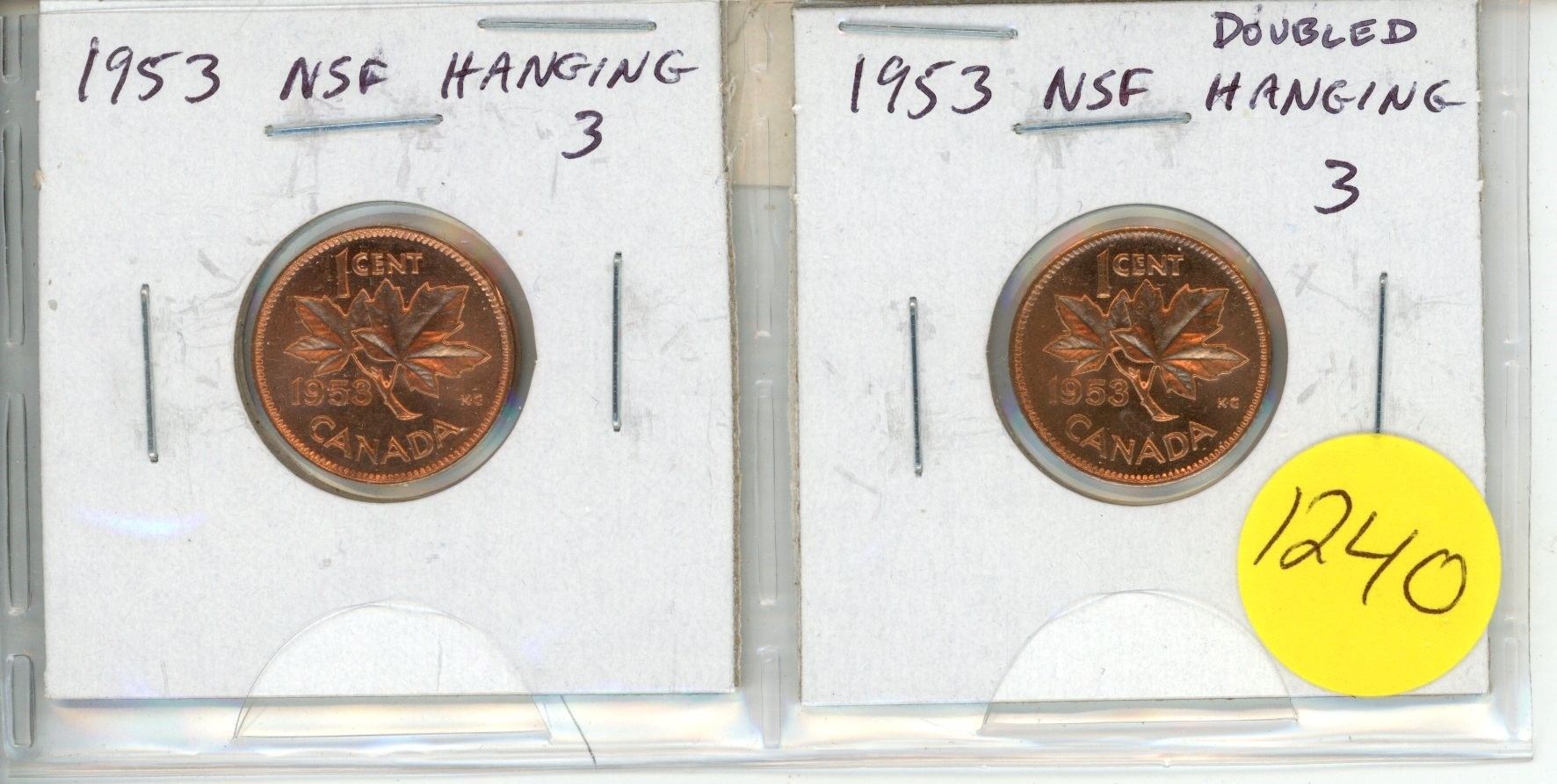 Lot of 2 1953 No Shoulder Fold Cent varieties. Includes Hanging 3 and Doubled Hanging 3, the result of different Die Clashes. Coins grade BU Red.