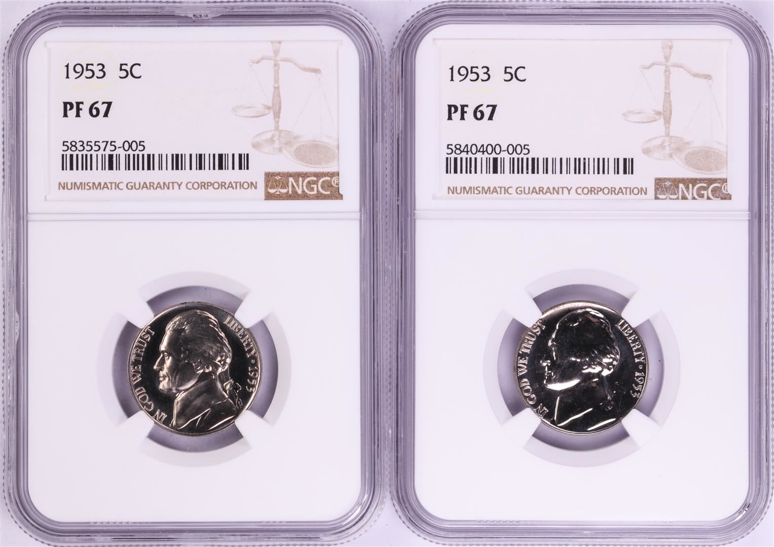 One Lot of (2) 1953 Proof Jefferson Nickel Coins NGC PF67. NGC Certified.
