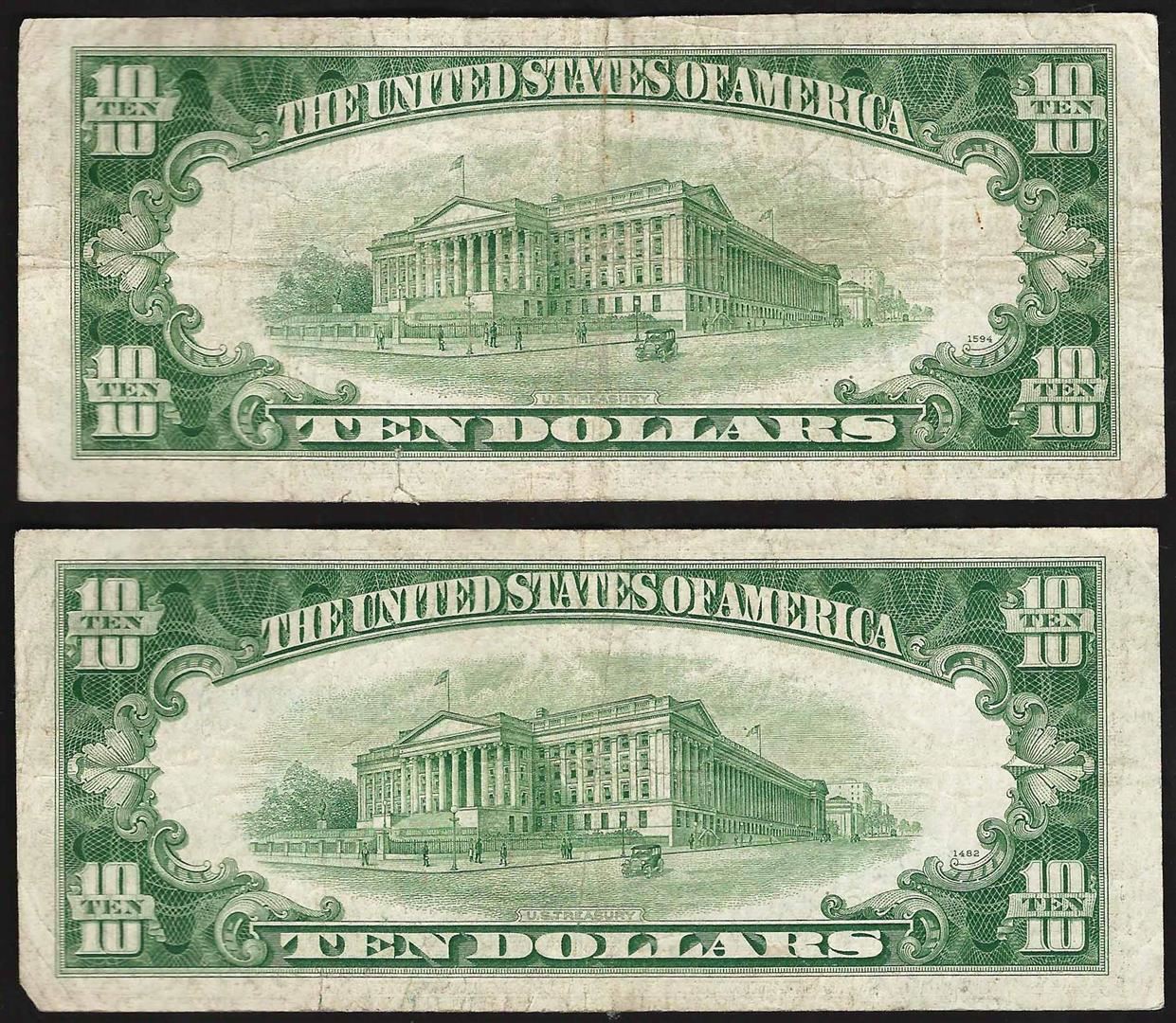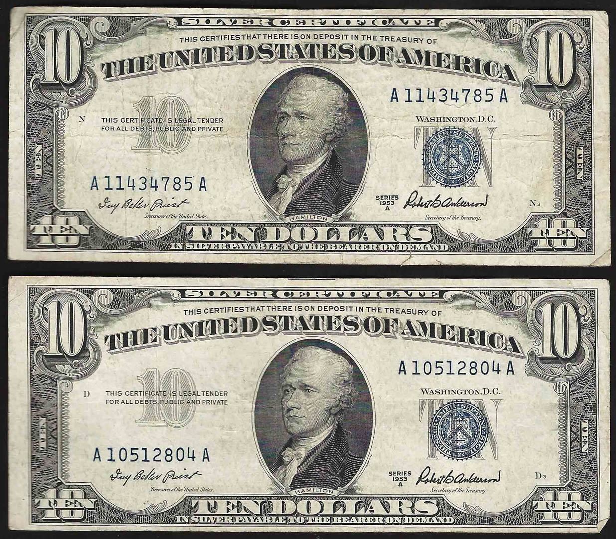 One Lot of (2) 1953A $10 Silver Certificate Notes.