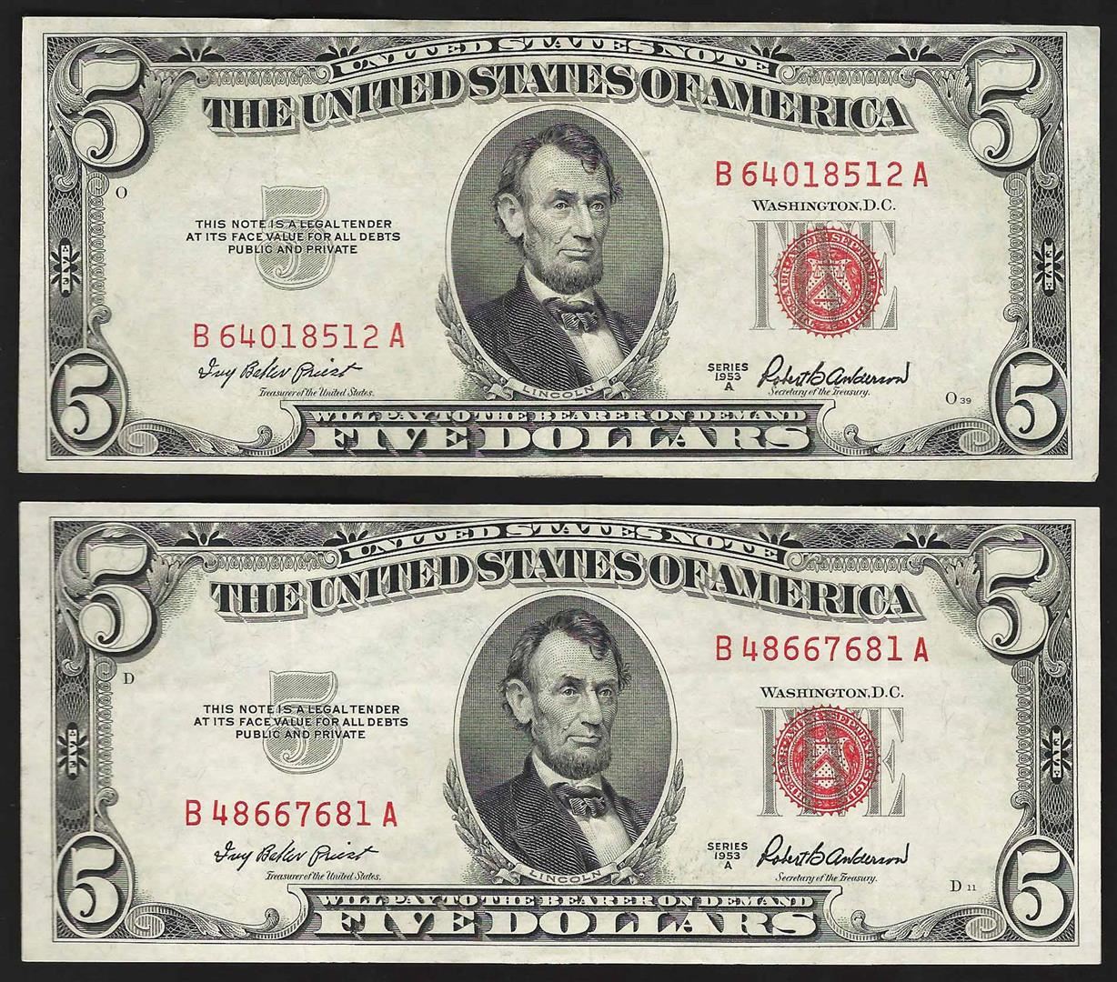 One Lot of (2) 1953A $5 Legal Tender Notes.