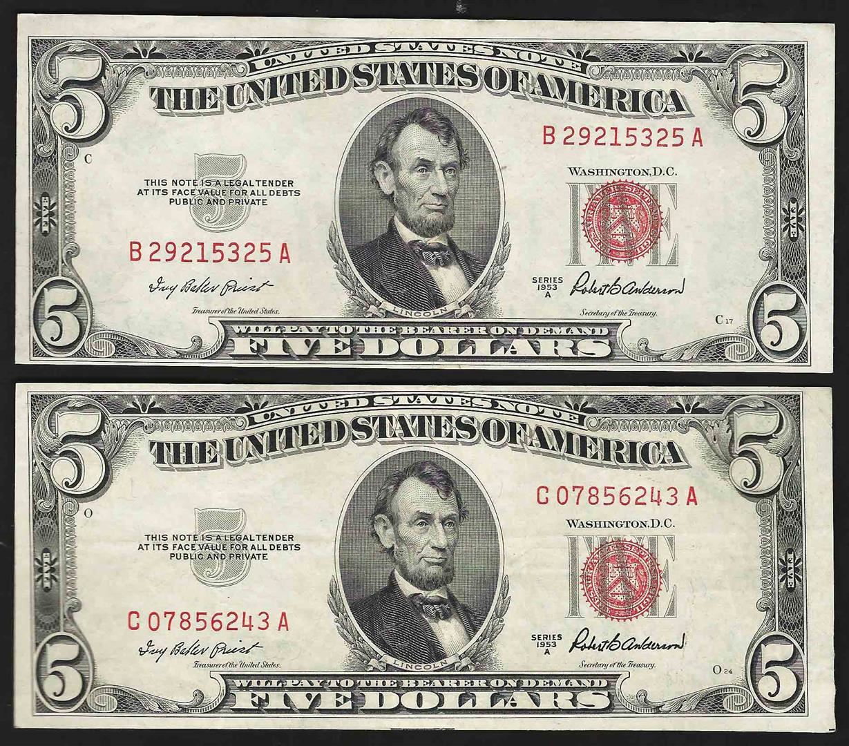 One Lot of (2) 1953A $5 Legal Tender Notes.