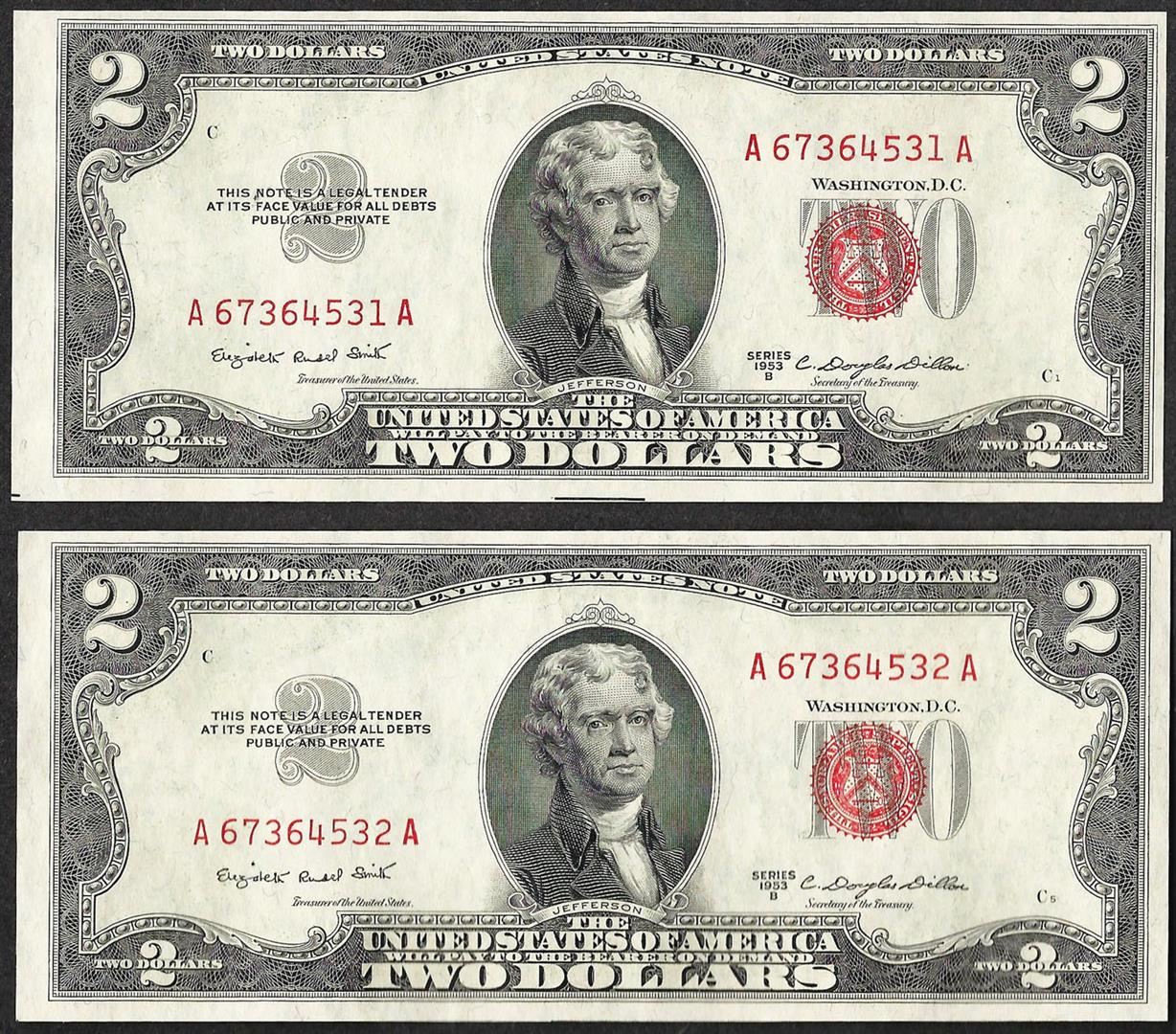 One Lot of (2) 1953B $2 Legal Tender Notes.
