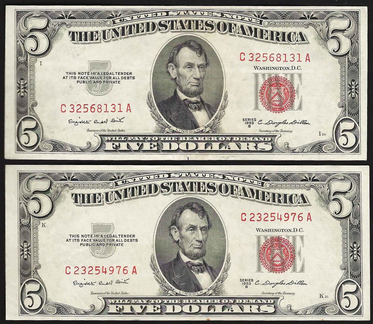 One Lot of (2) 1953B $5 Legal Tender Notes.