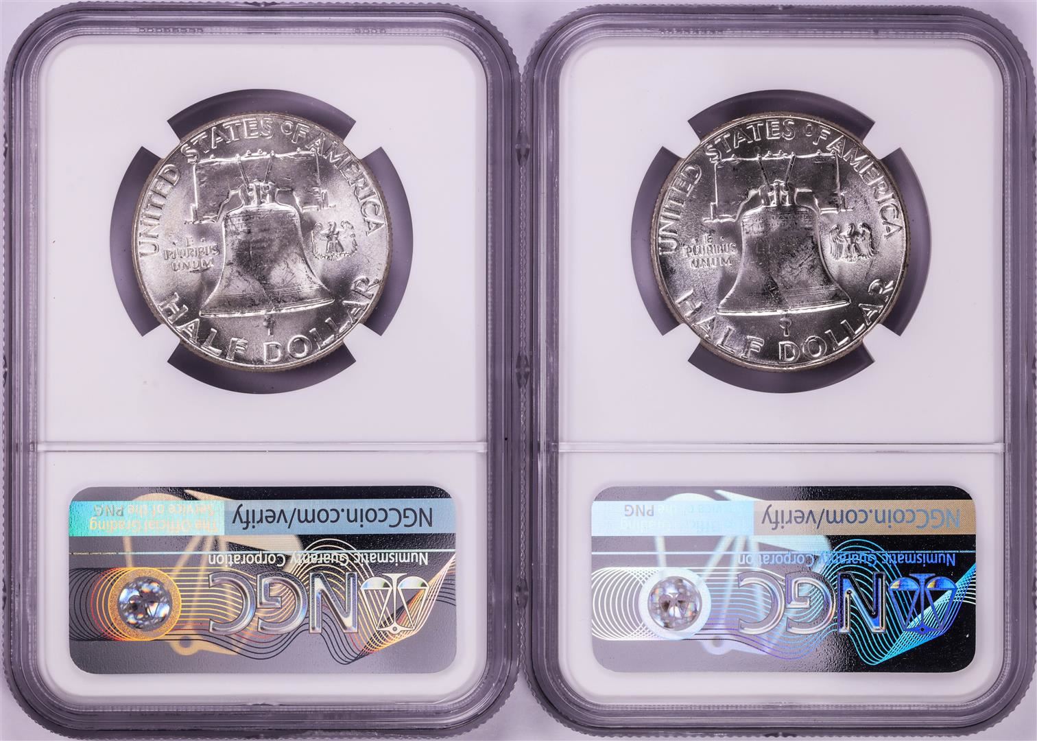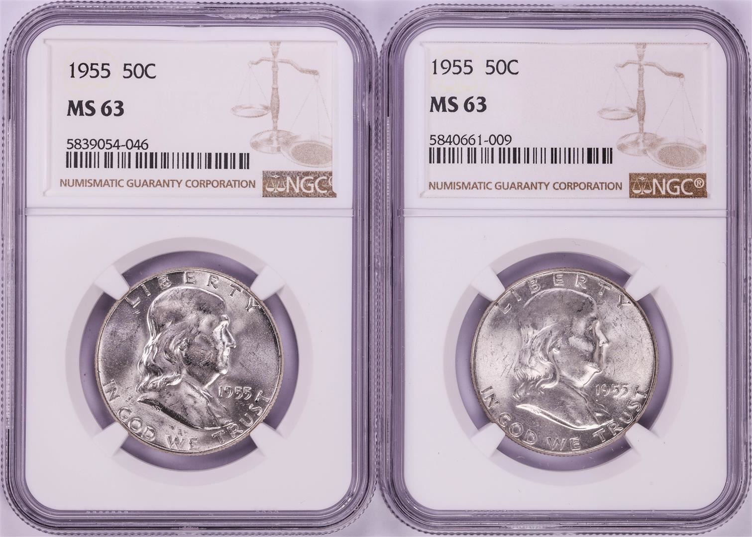One Lot of (2) 1955 Franklin Half Dollar Coins NGC MS63. NGC Certified.
