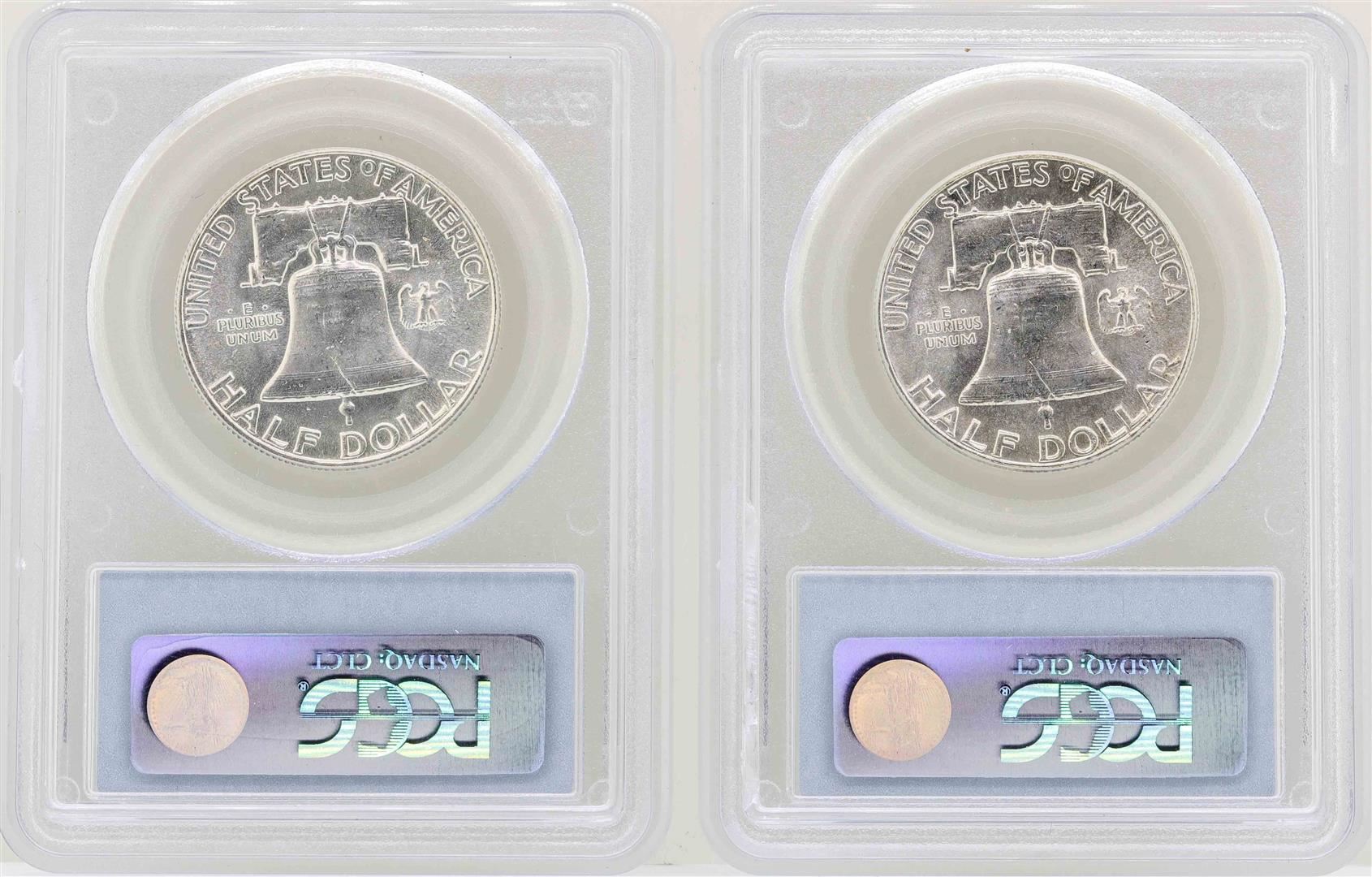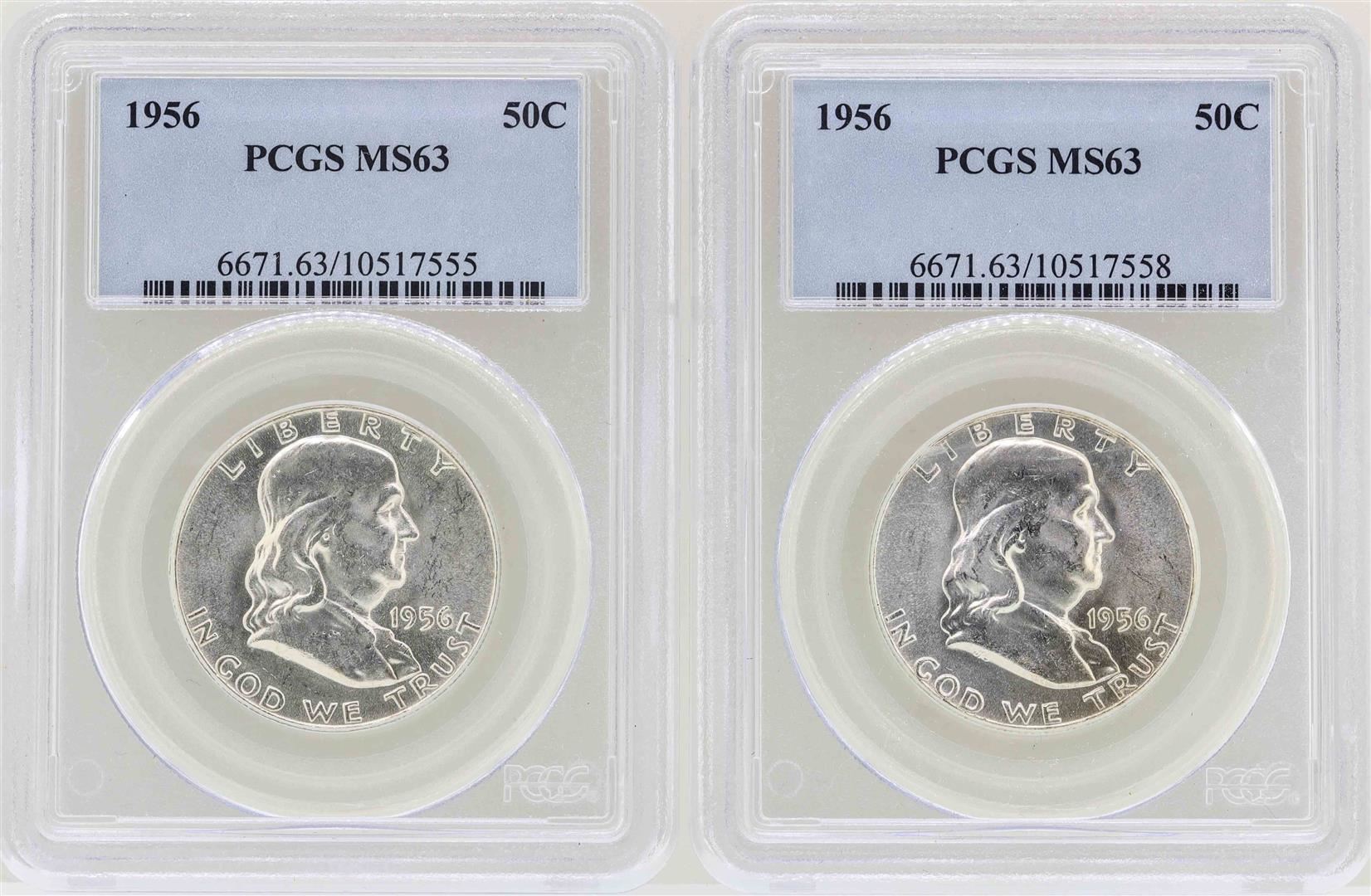 One Lot of (2) 1956 Franklin Half Dollar Coins NGC MS63. NGC Certified.