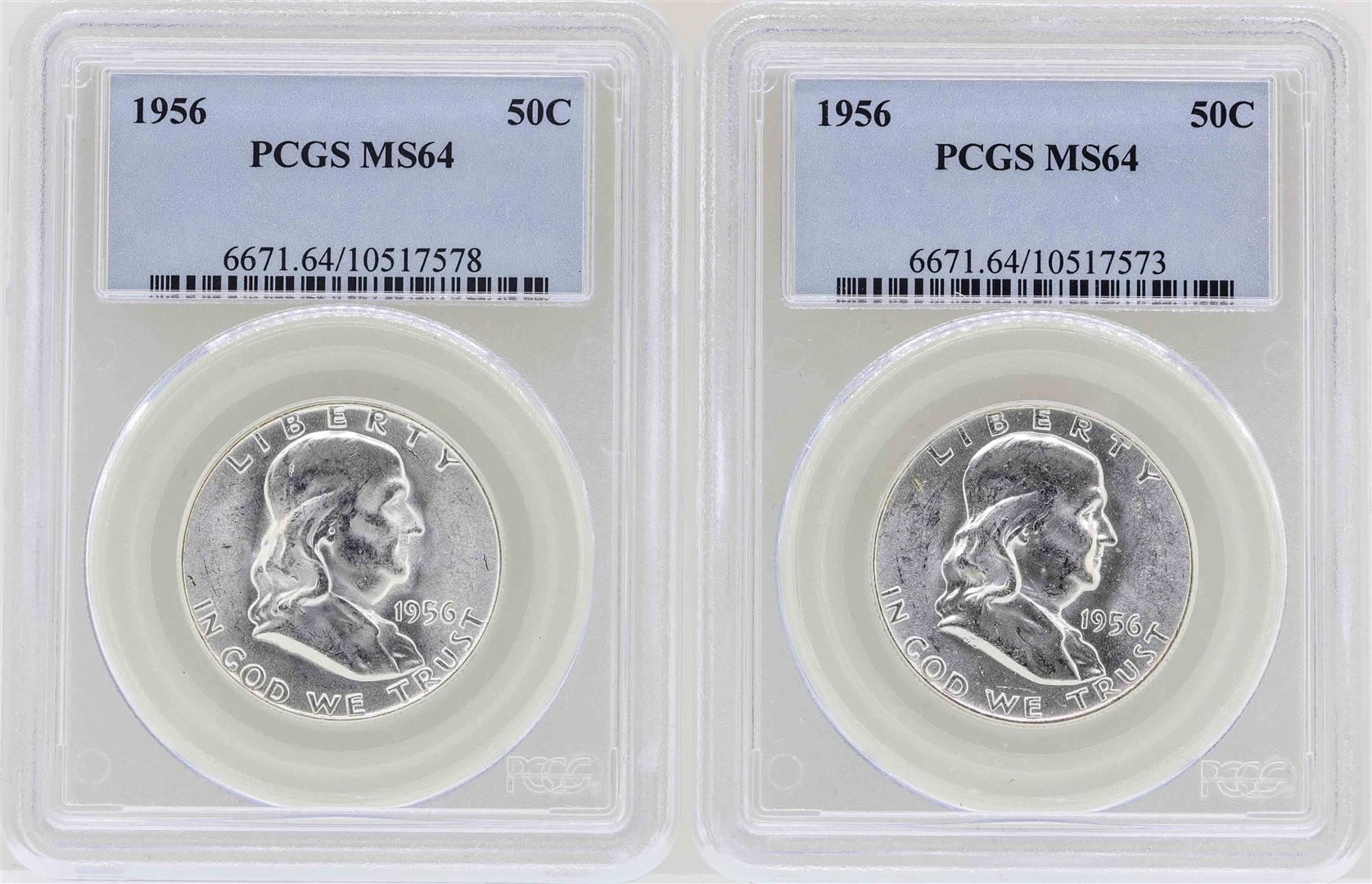 One Lot of (2) 1956 Franklin Half Dollar Coins NGC MS64. NGC Certified.