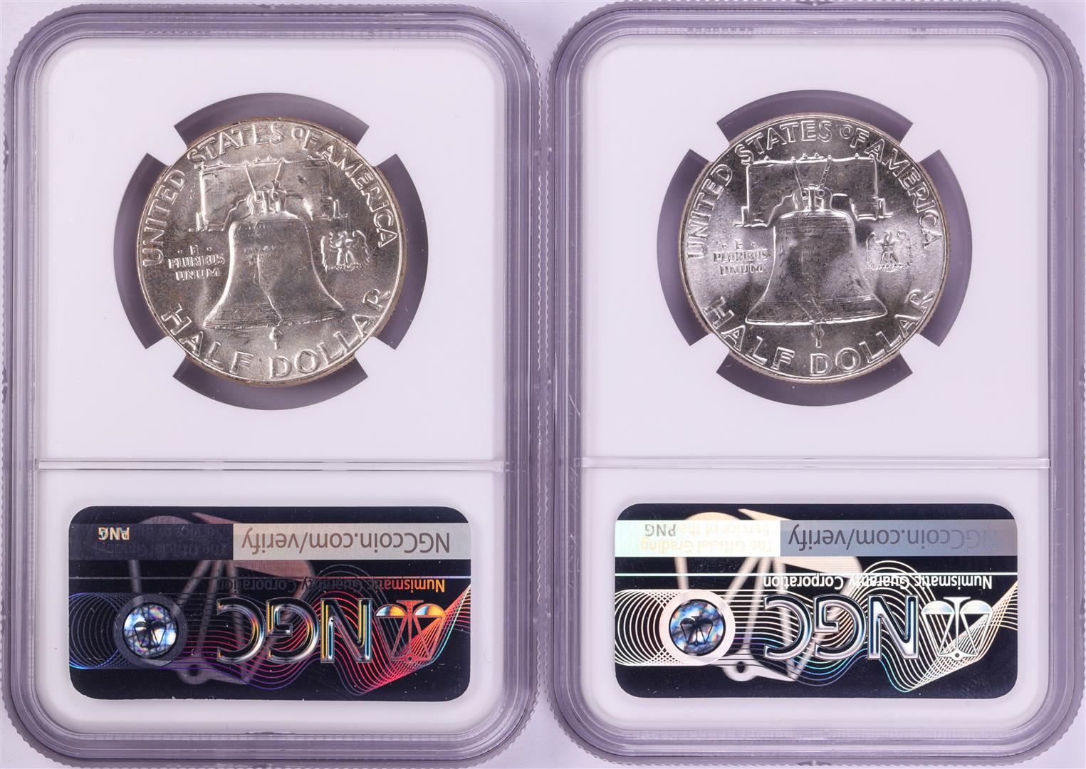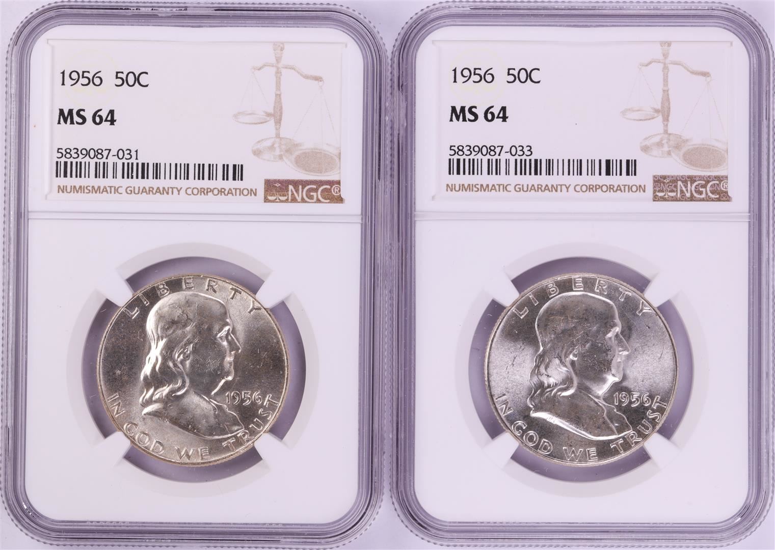 One Lot of (2) 1956 Franklin Half Dollar Coins NGC MS64. NGC Certified.
