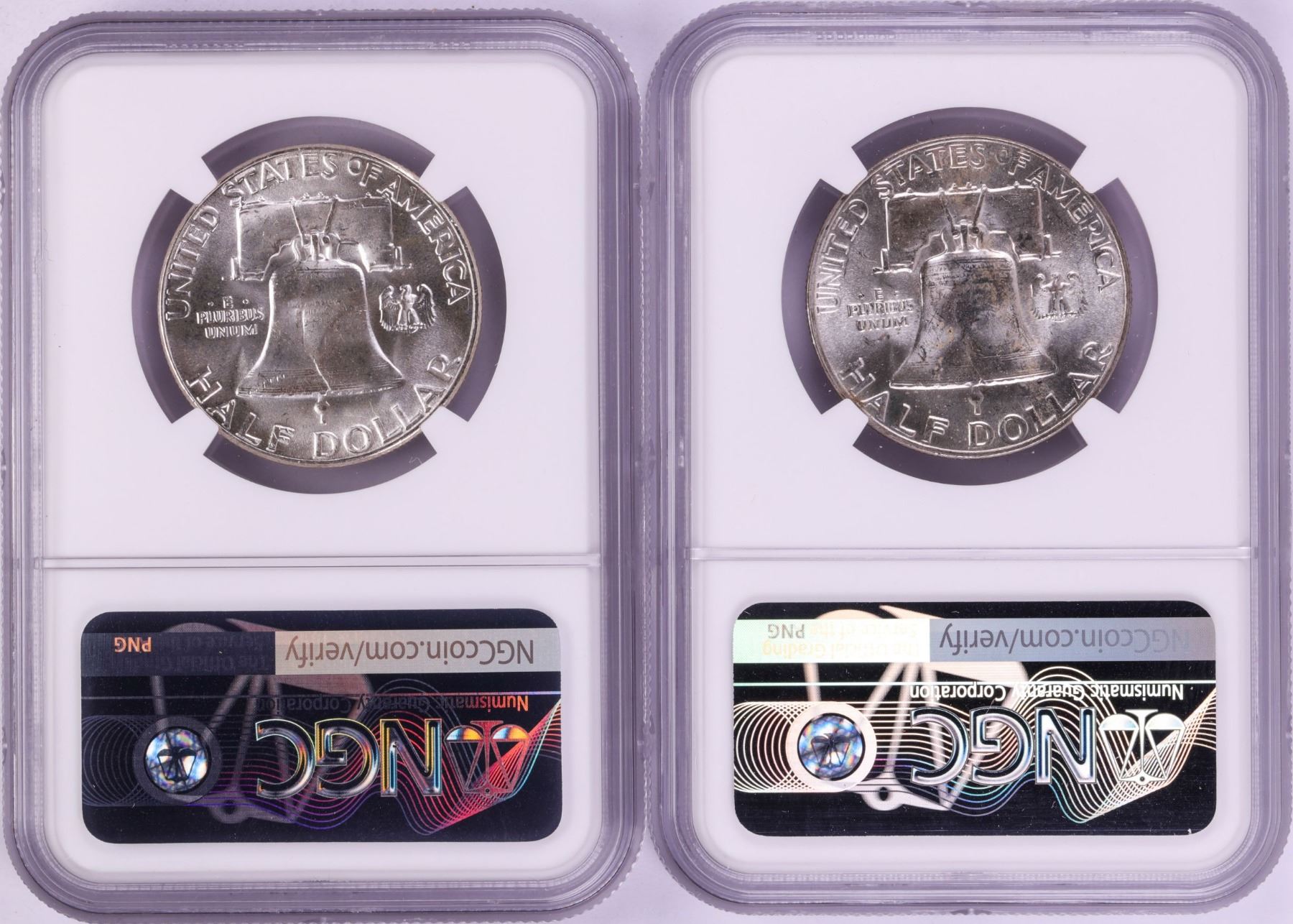 One Lot of (2) 1956 Franklin Half Dollar Coins NGC MS64.