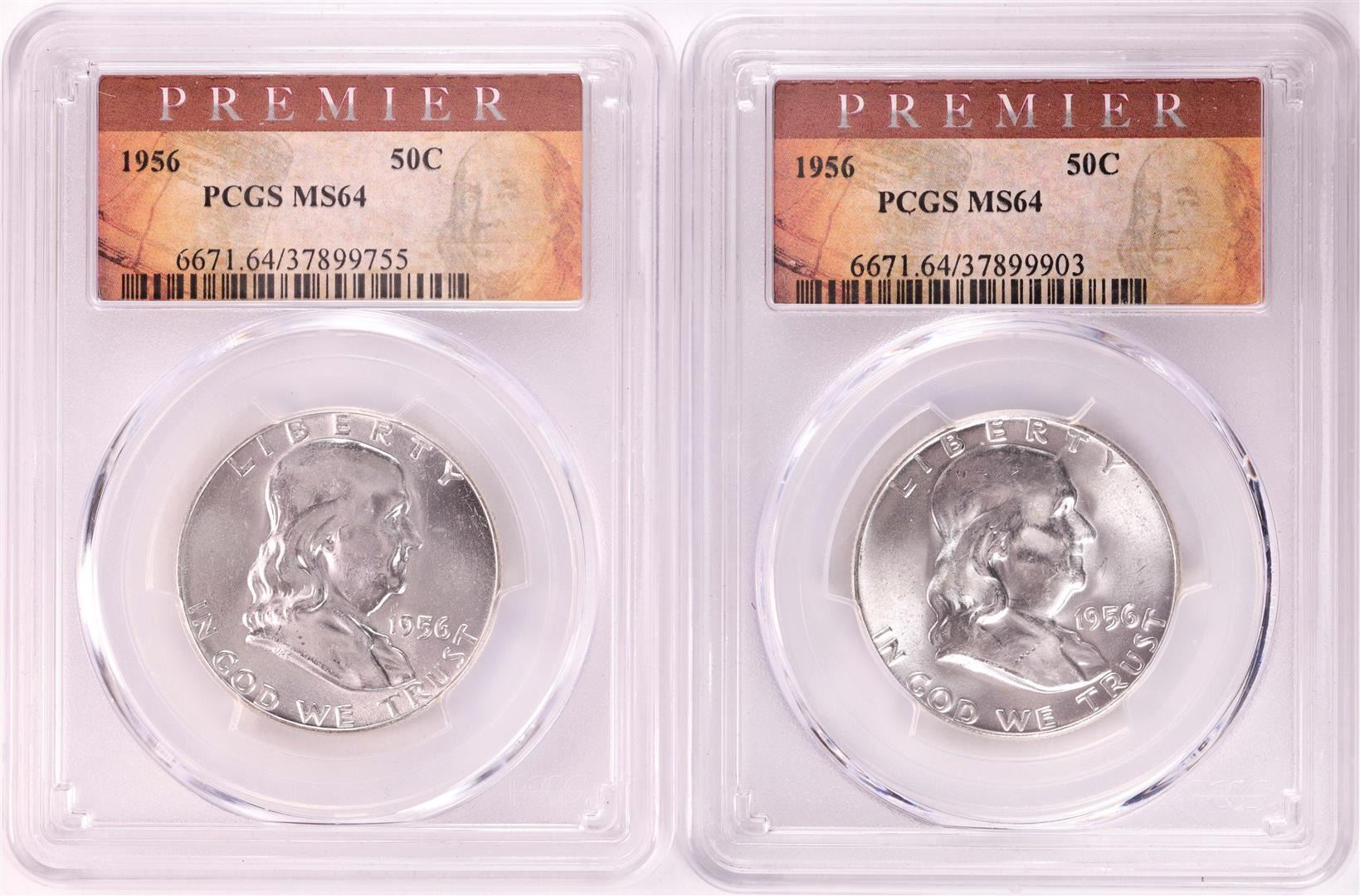 One Lot of (2) 1956 Franklin Half Dollar Coins PCGS MS64. PCGS Graded.