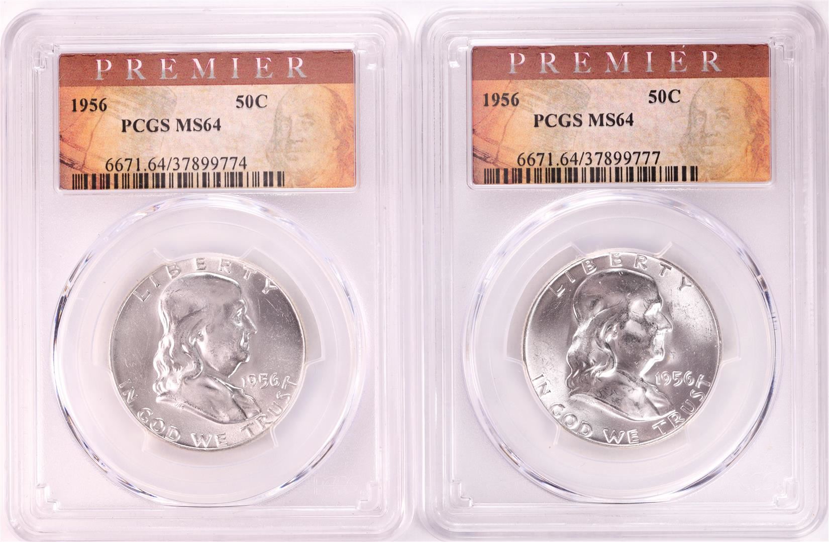 One Lot of (2) 1956 Franklin Half Dollar Coins PCGS MS64. PCGS Graded.