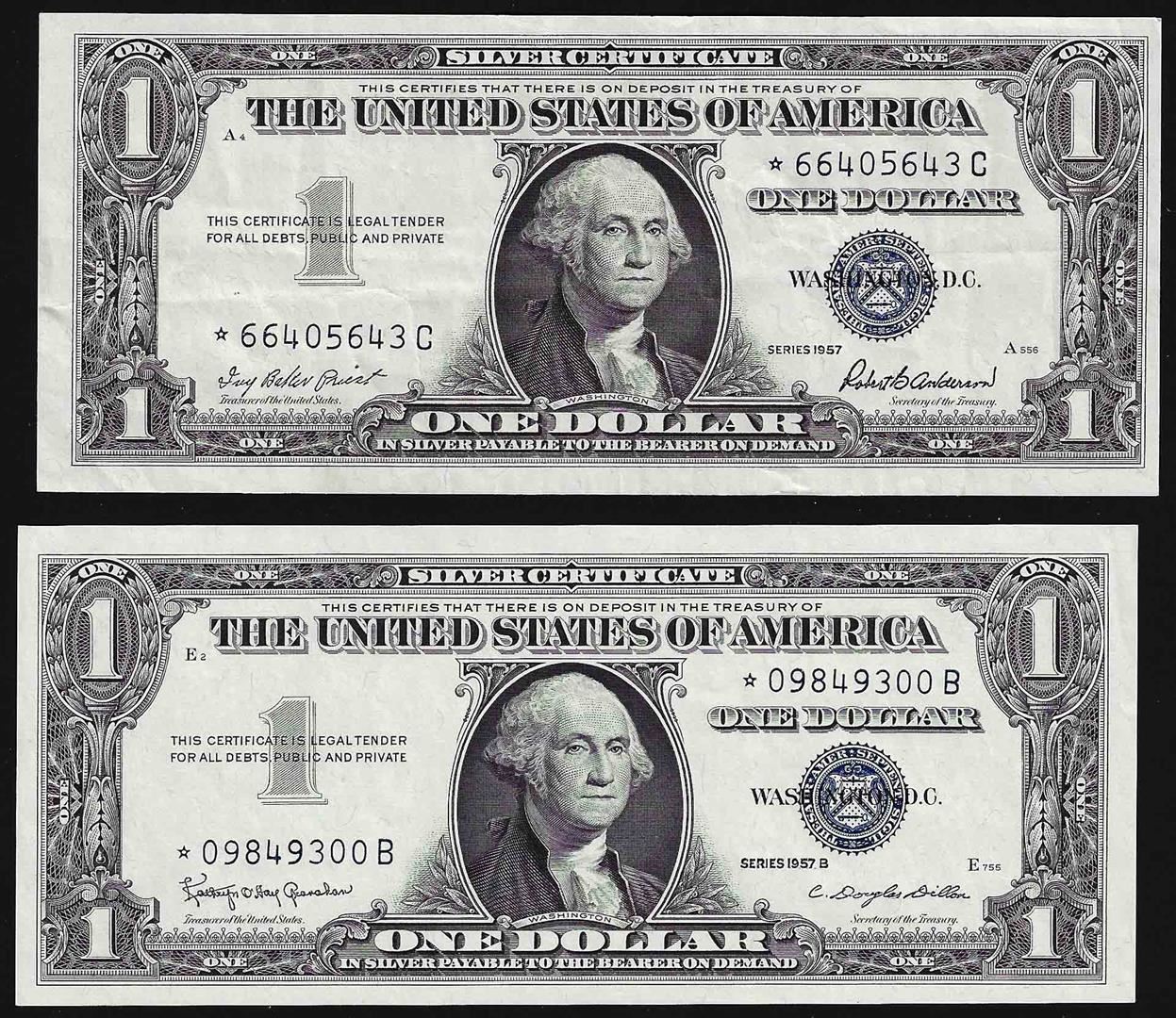 One Lot of (2) 1957 $1 Silver Certificate STAR Notes.