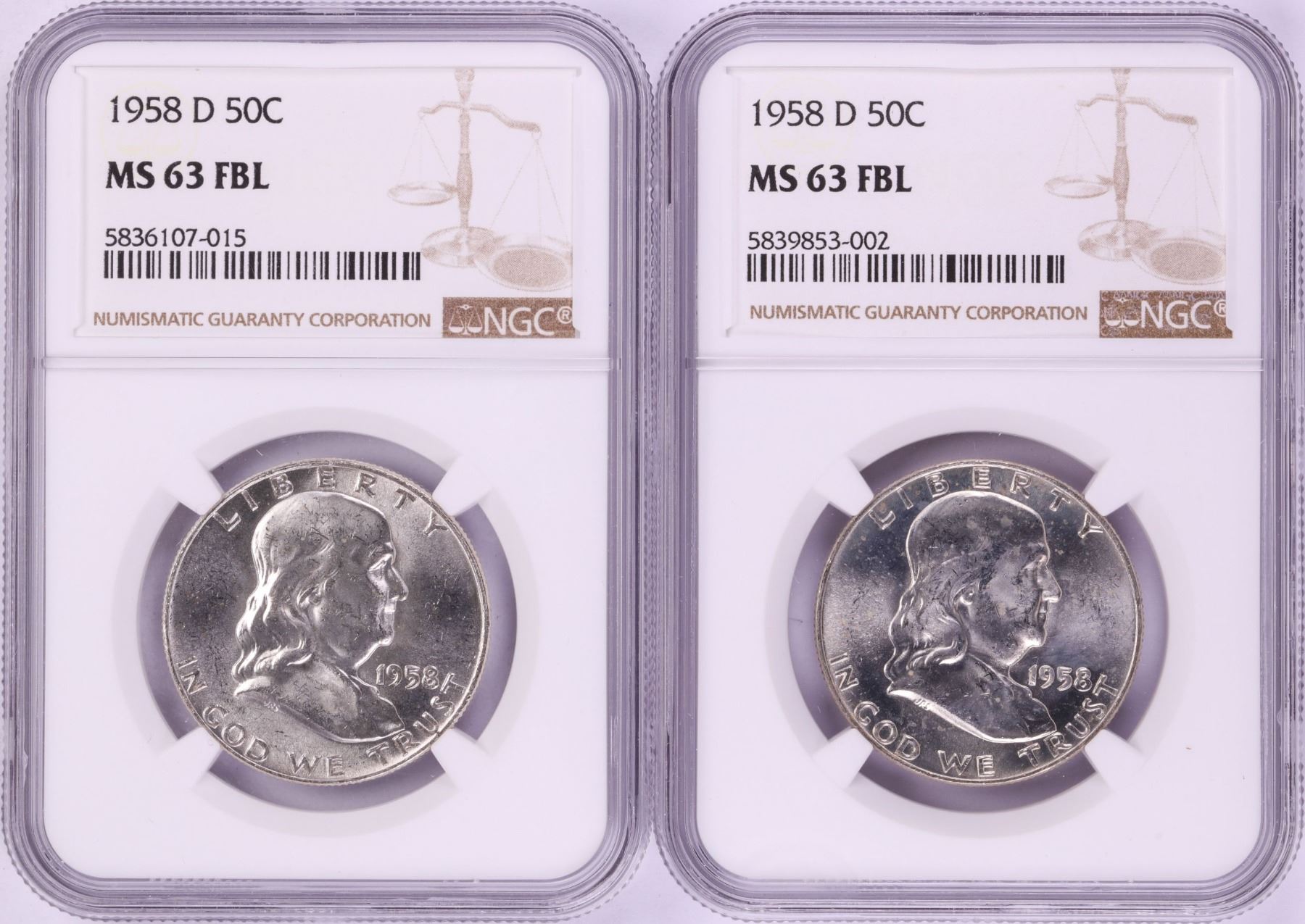 One Lot of (2) 1958-D Franklin Half Dollar Coins NGC MS63FBL.