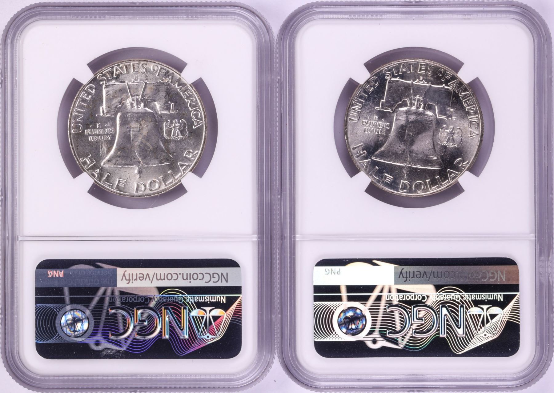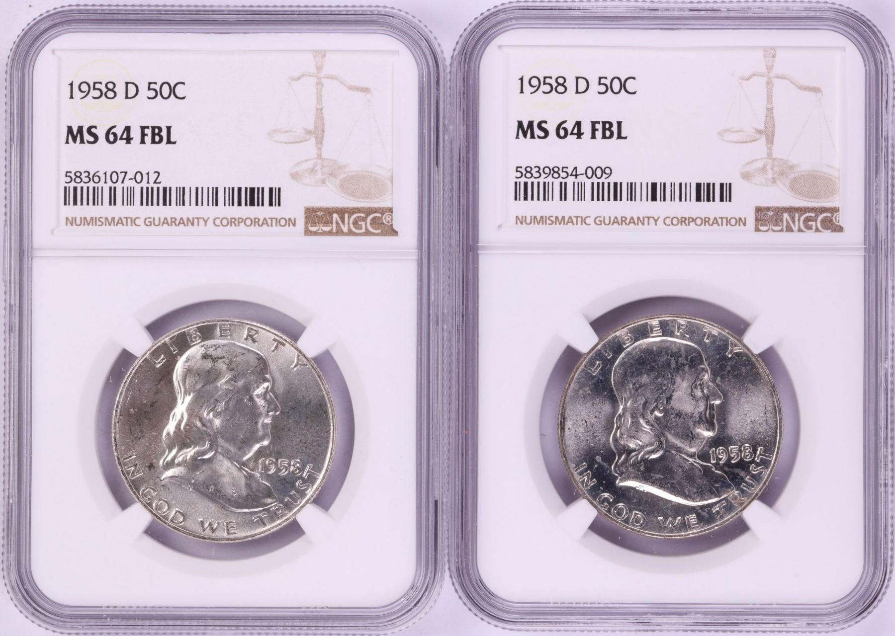 One Lot of (2) 1958-D Franklin Half Dollar Coins NGC MS64FBL.