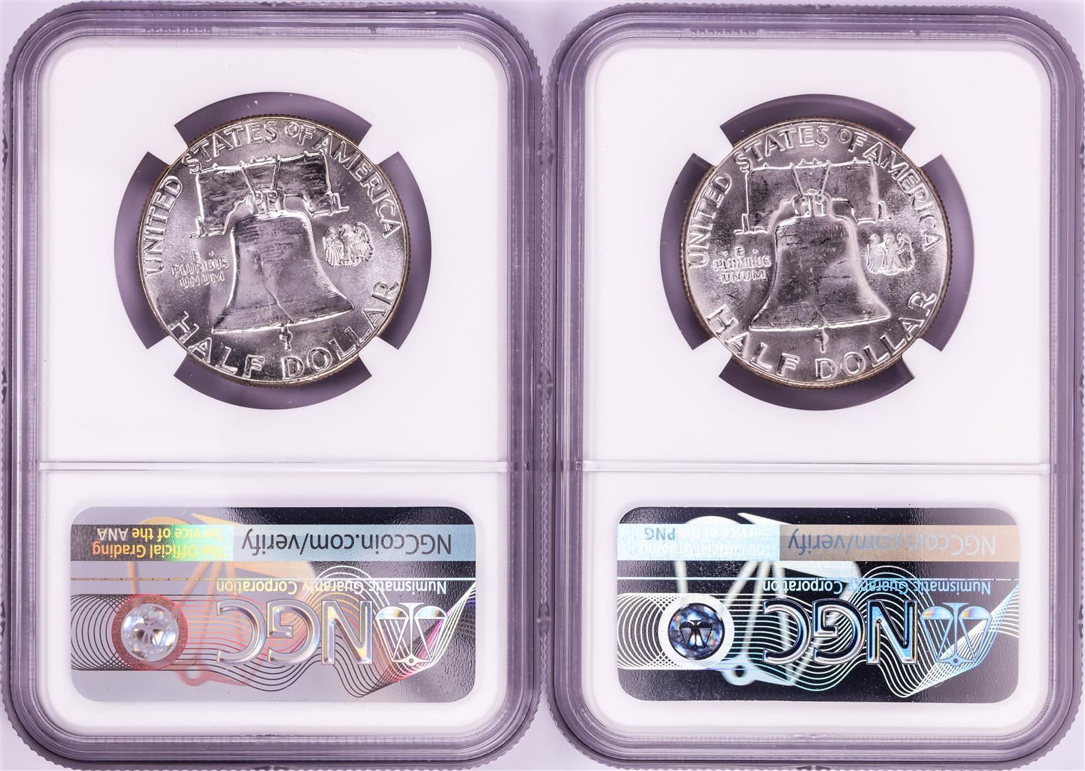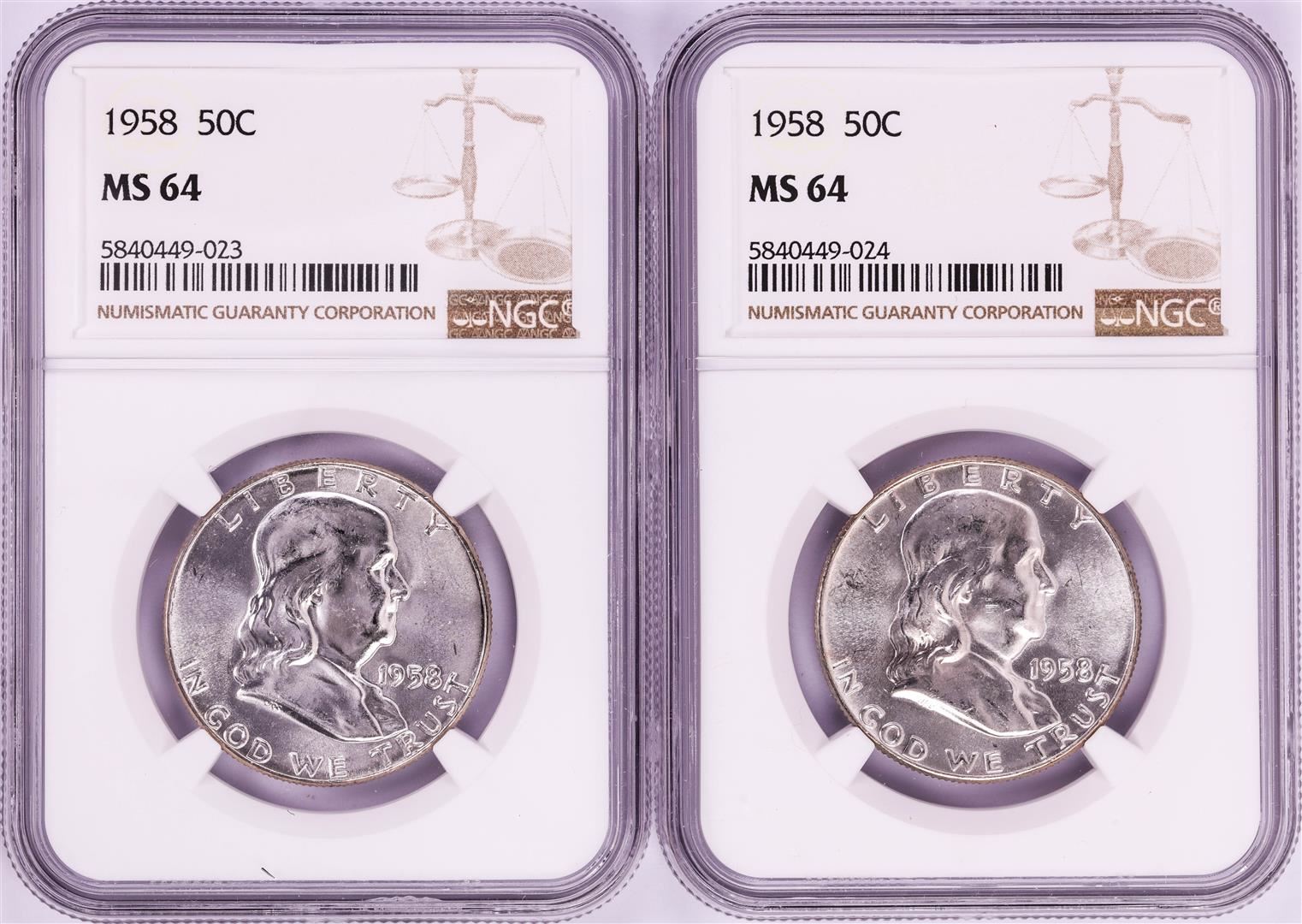One Lot of (2) 1958 Franklin Half Dollar Coins NGC MS64. NGC Certified.