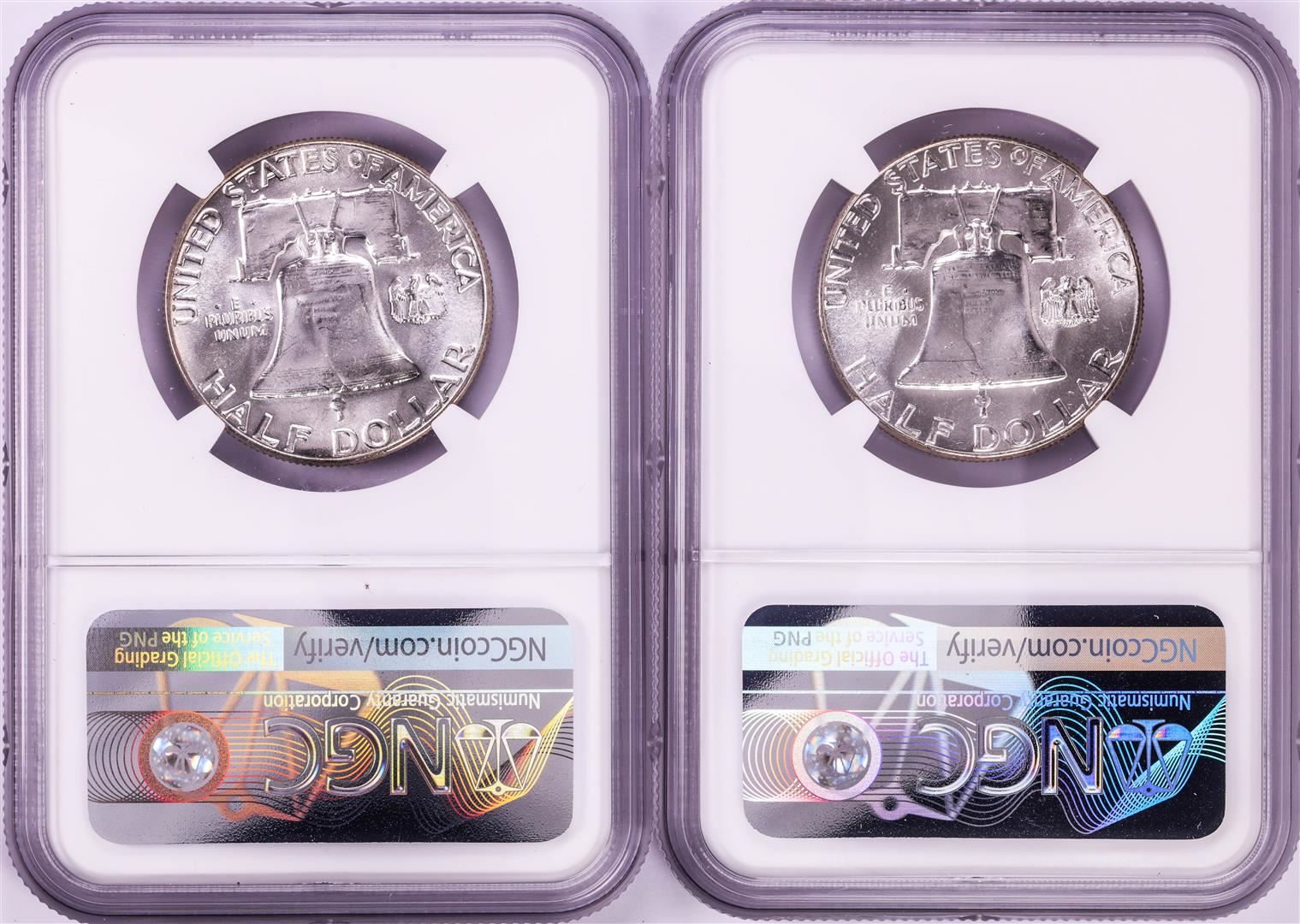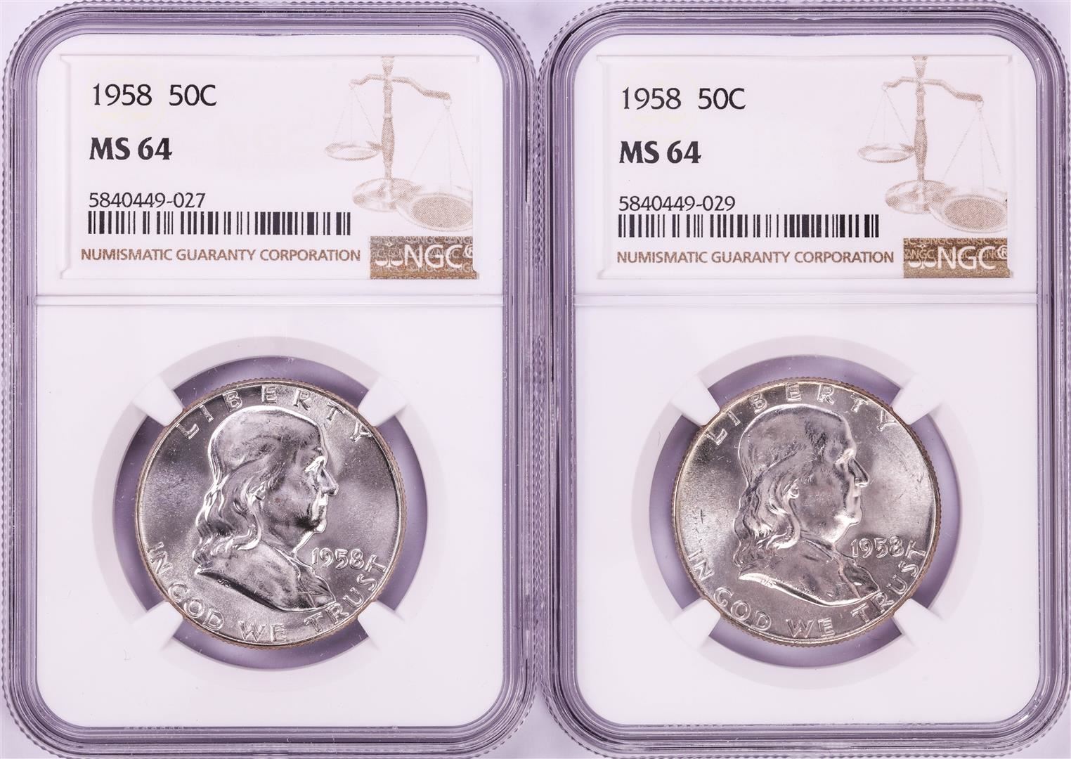One Lot of (2) 1958 Franklin Half Dollar Coins NGC MS64. NGC Certified.