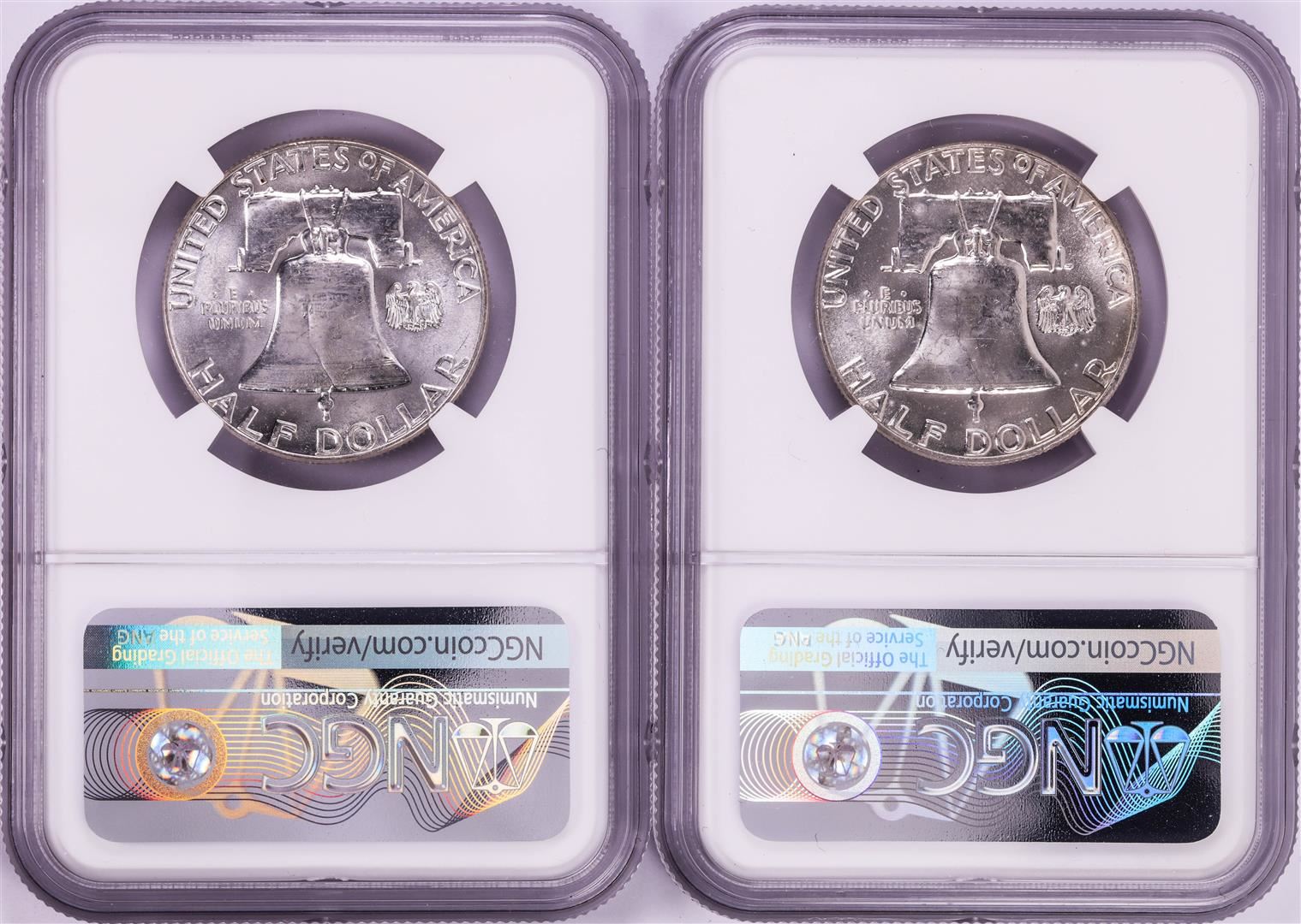 One Lot of (2) 1959 Franklin Half Dollar Coins NGC MS63. NGC Certified.