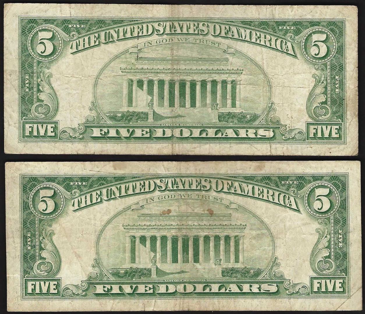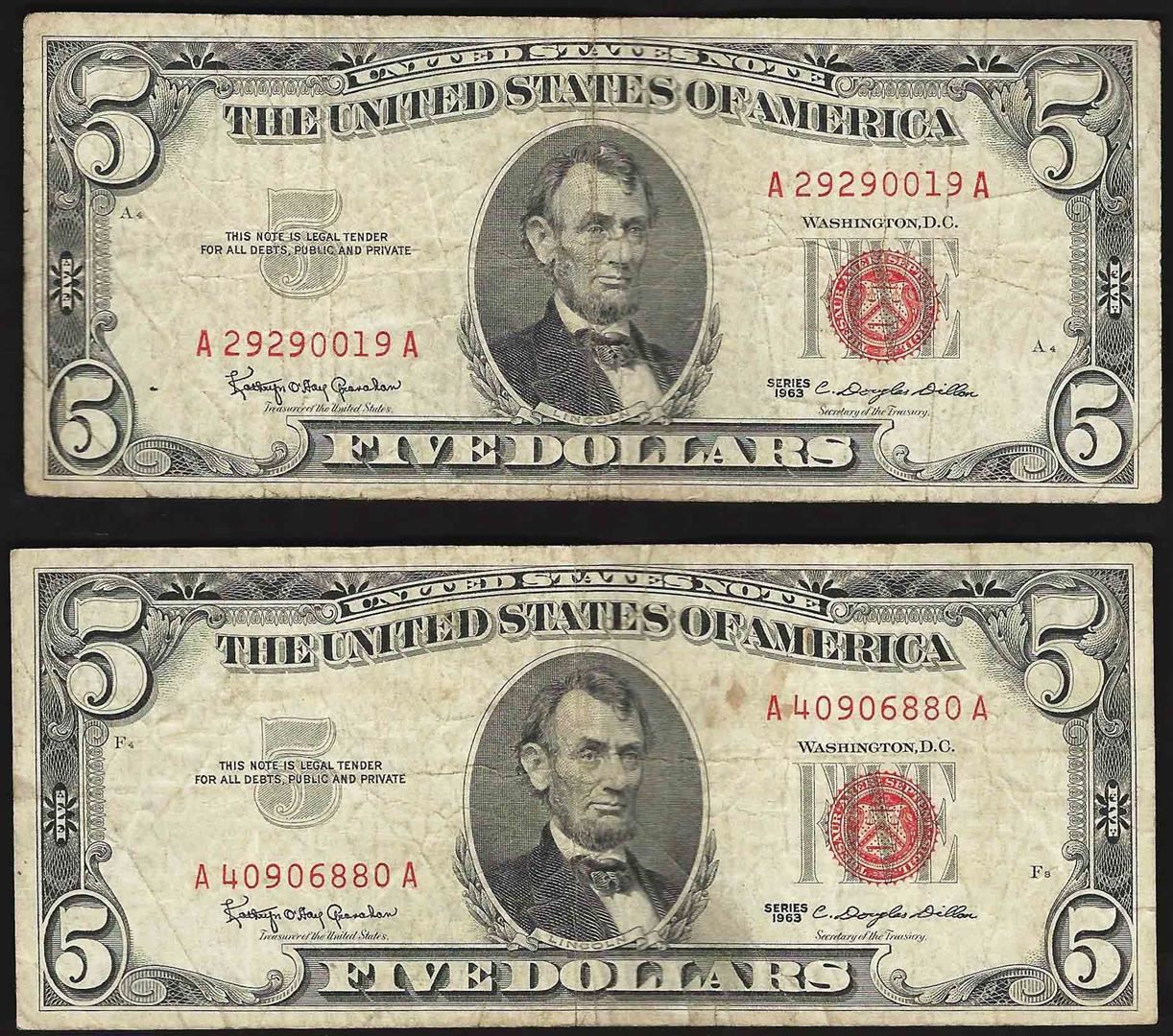 One Lot of (2) 1963 $5 Legal Tender Notes.