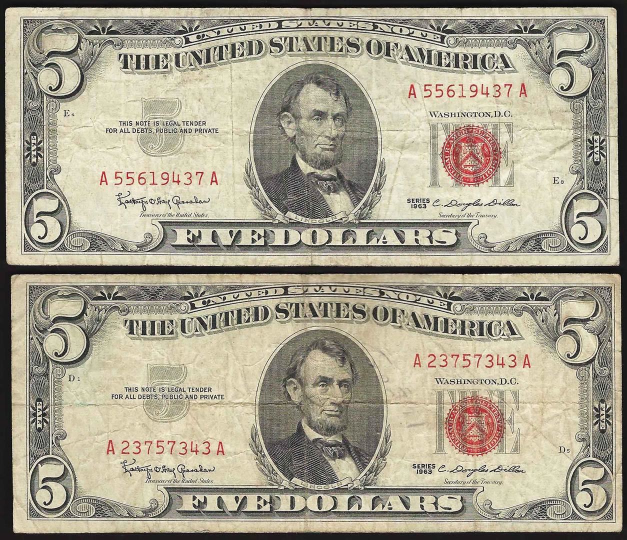 One Lot of (2) 1963 $5 Legal Tender Notes.
