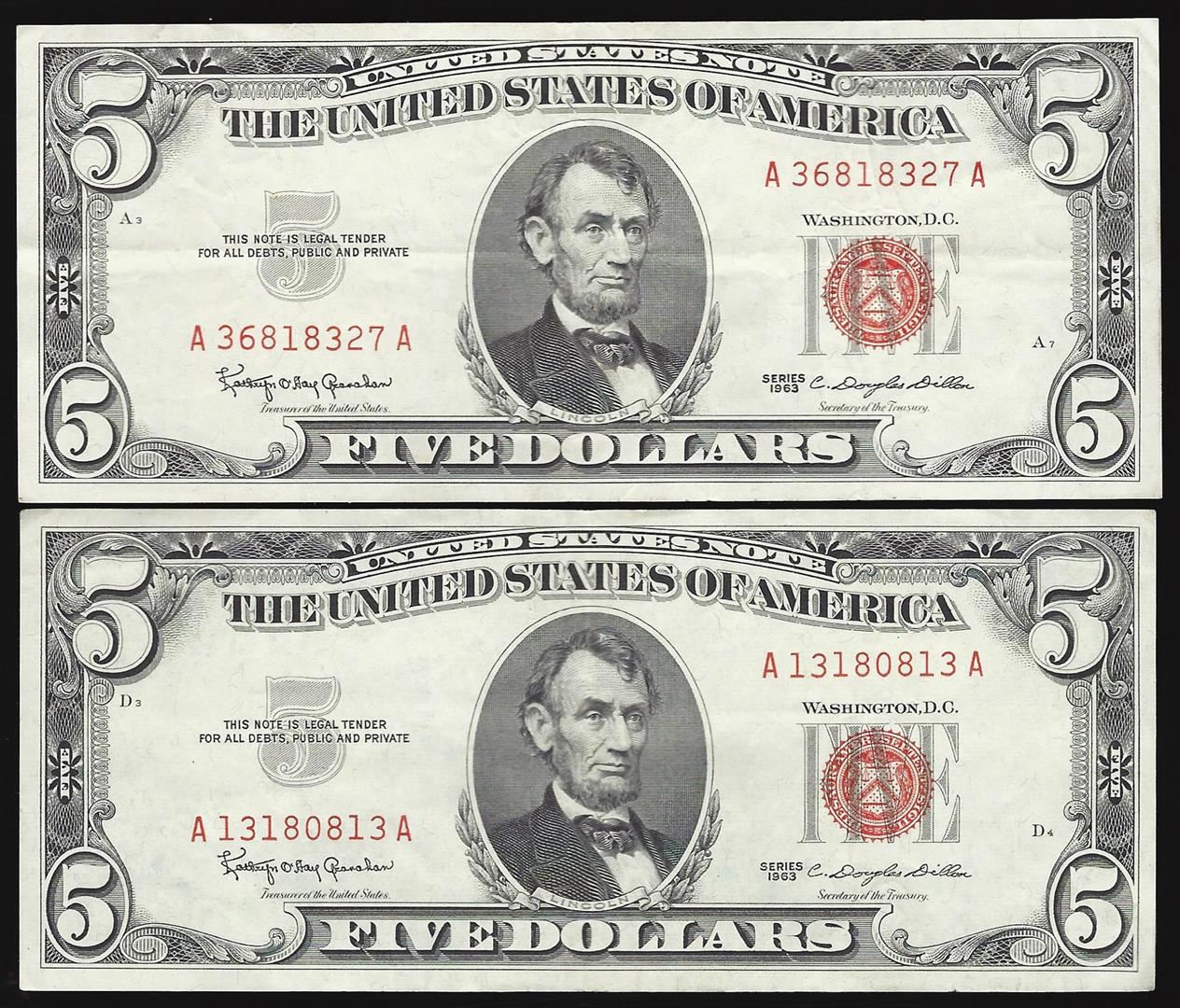 One Lot of (2) 1963 $5 Legal Tender Notes.