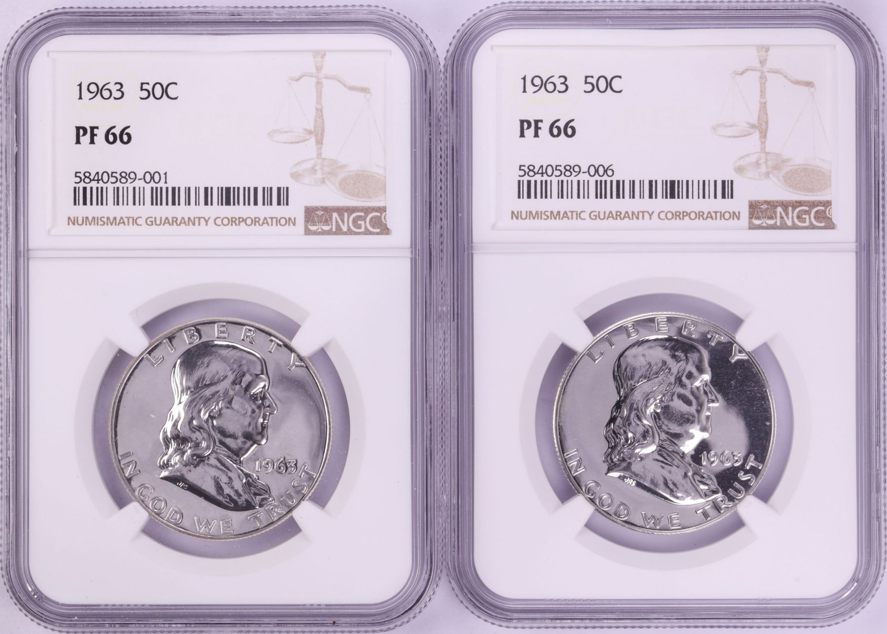 One Lot of (2) 1963 Proof Franklin Half Dollar Coins NGC PF66.