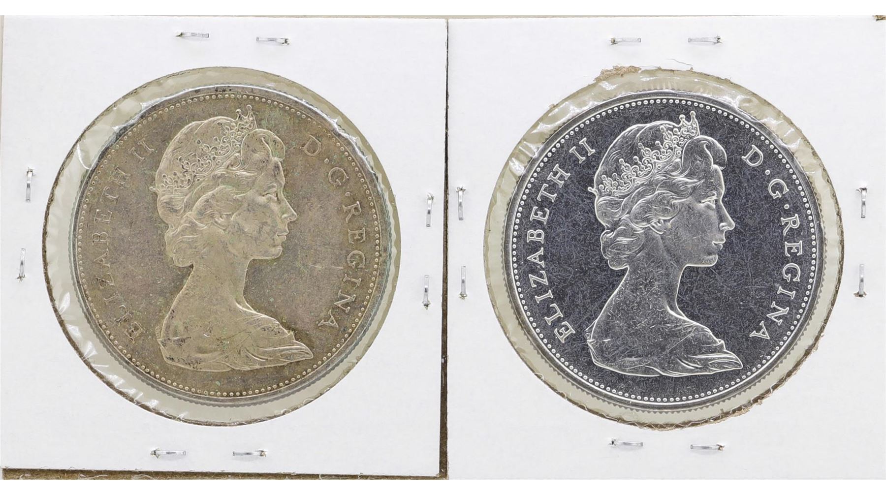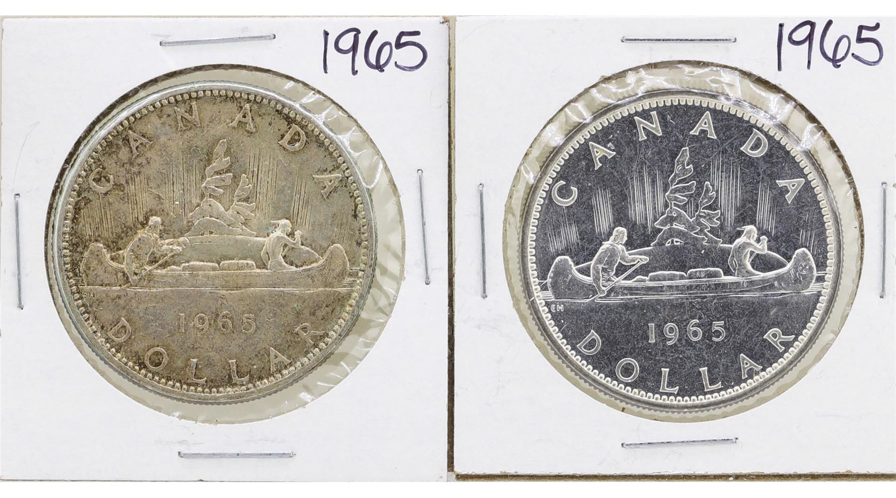 One Lot of (2) 1965 $1 Canada Silver Dollar Coins.