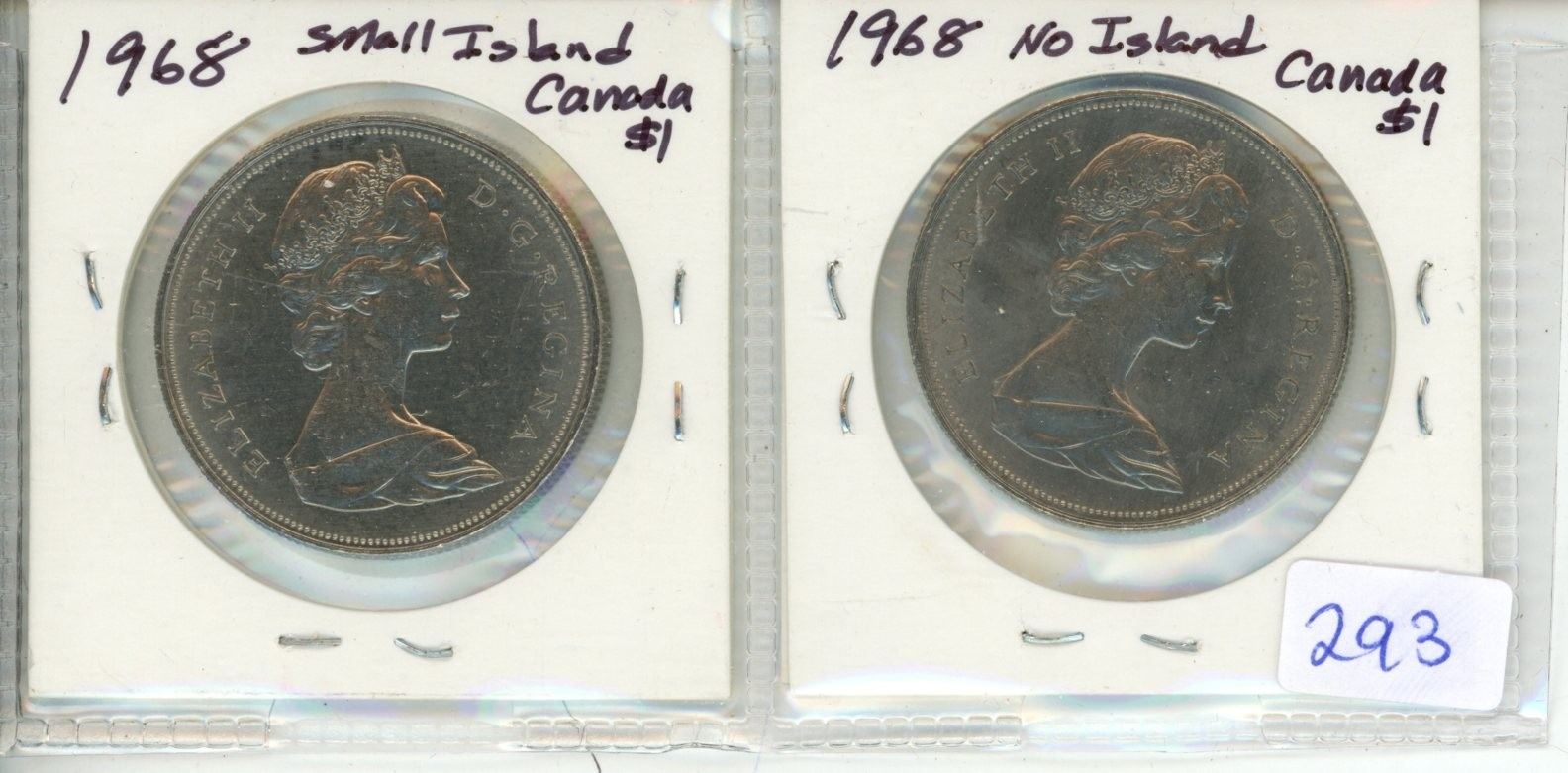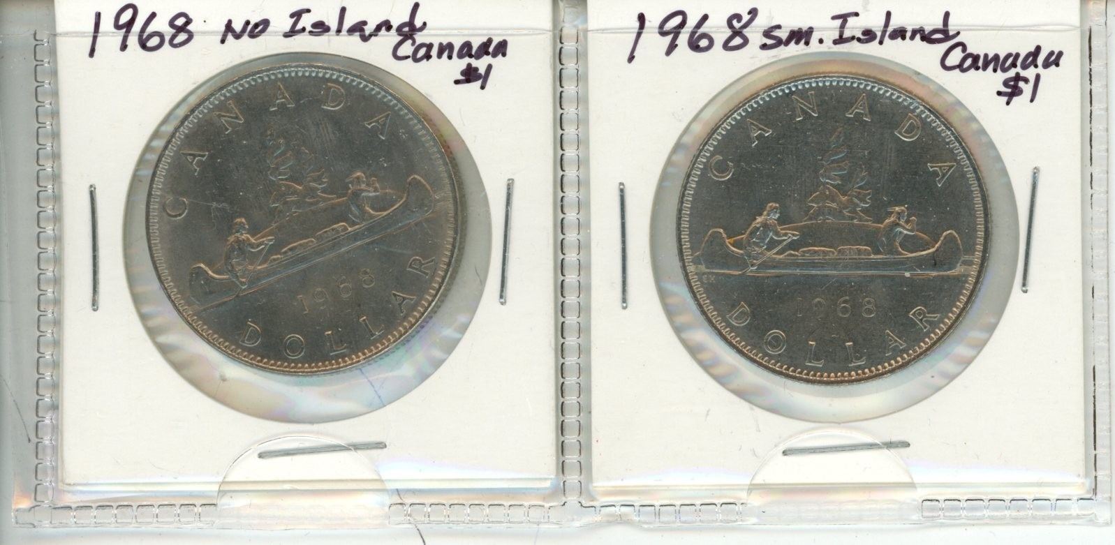 Lot of 2: 1968 No Island & 1968 Small Island Canada $1