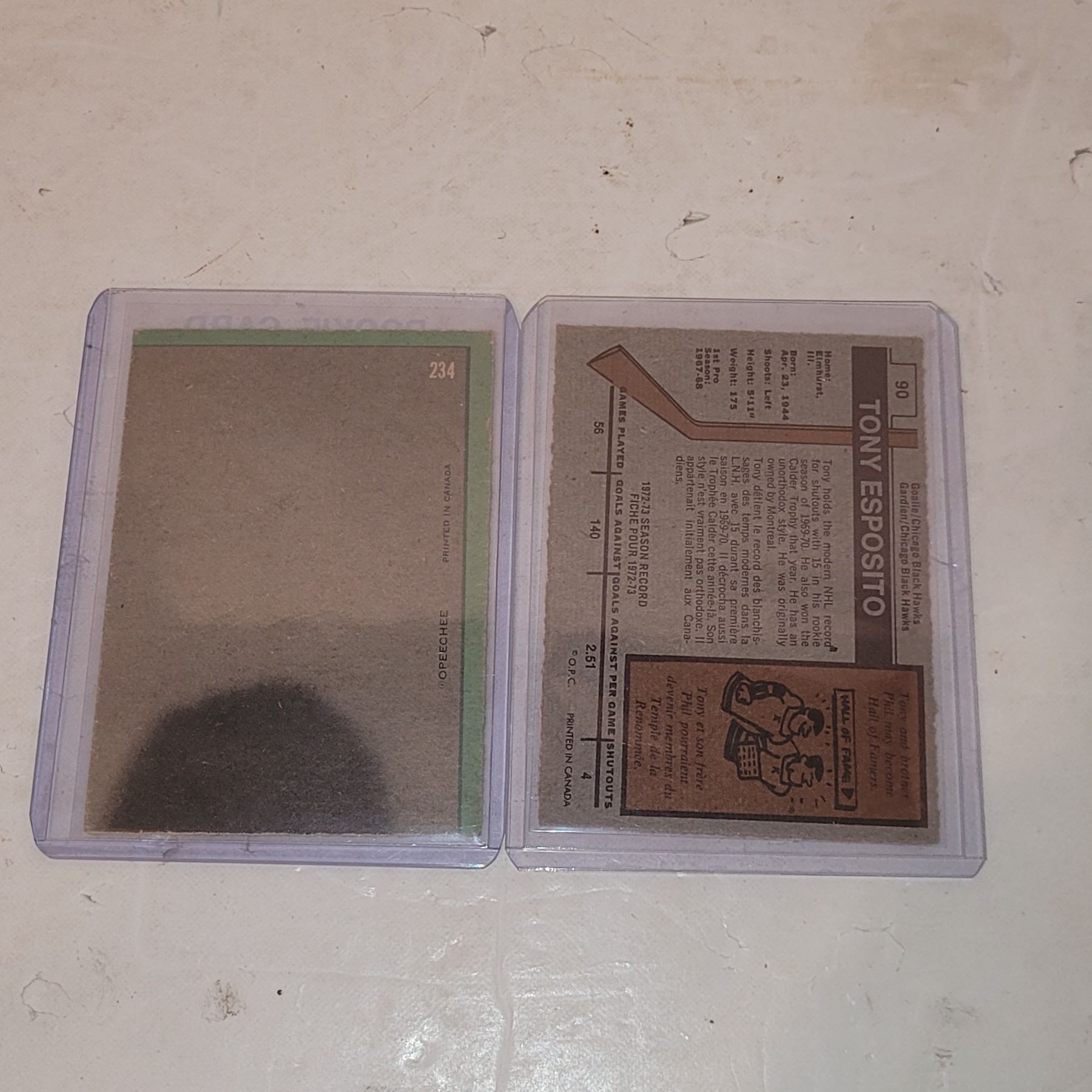 Lot of 2 1970 & 1973 OPC Tony Esposito Including 1970 #234 Rookie Card