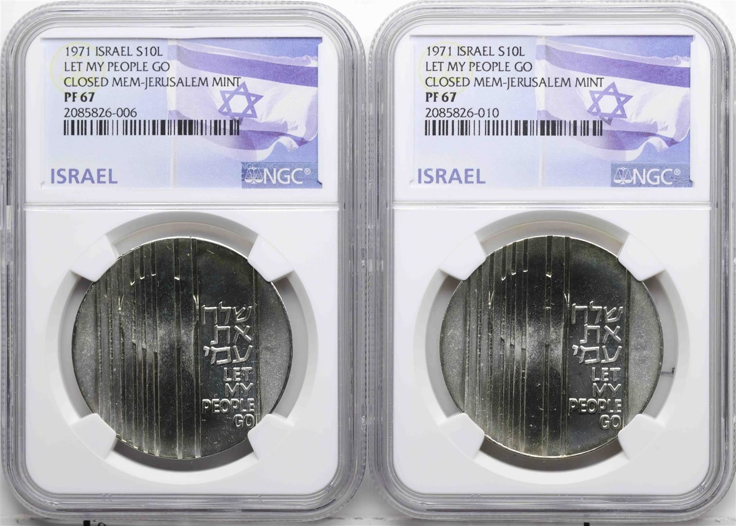 Lot of (2) 1971 Israel 10 Lirot Let My People Go Silver Coins NGC PF67