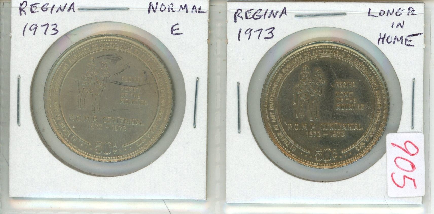 Lot of 2 1973 Regina Trade Dollar Varieties. Includes Normal E in HOME and Long E in HOME.