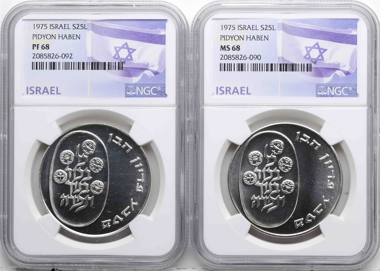One Lot of (2) 1975 Pidyon Haben Israel Silver Coins MS68. NGC Certified.