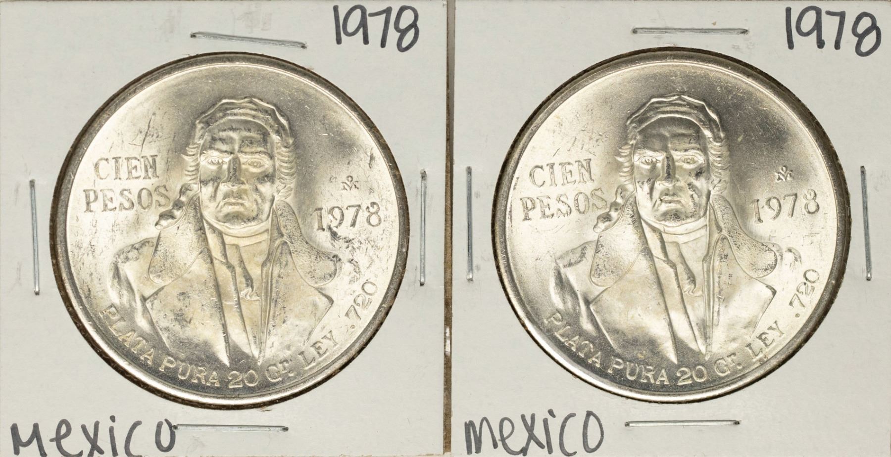 One Lot of (2) 1978 Mexico Cien Pesos Silver Coins.