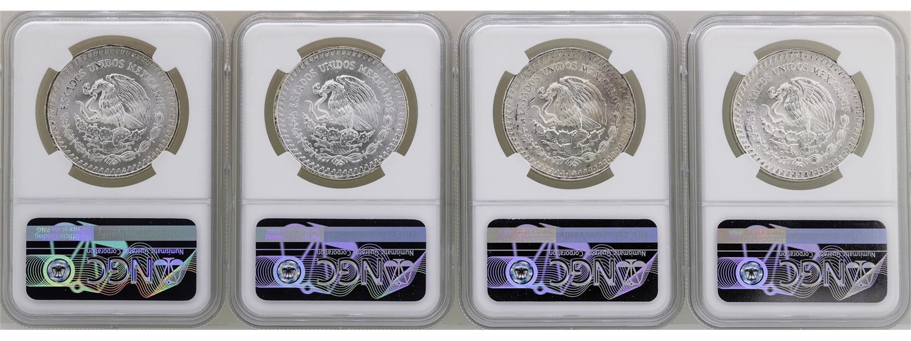 One Lot of (2) 1982Mo & (2) 1983Mo Mexico Libertad Onza Silver Coins NGC MS66. NGC Certified.