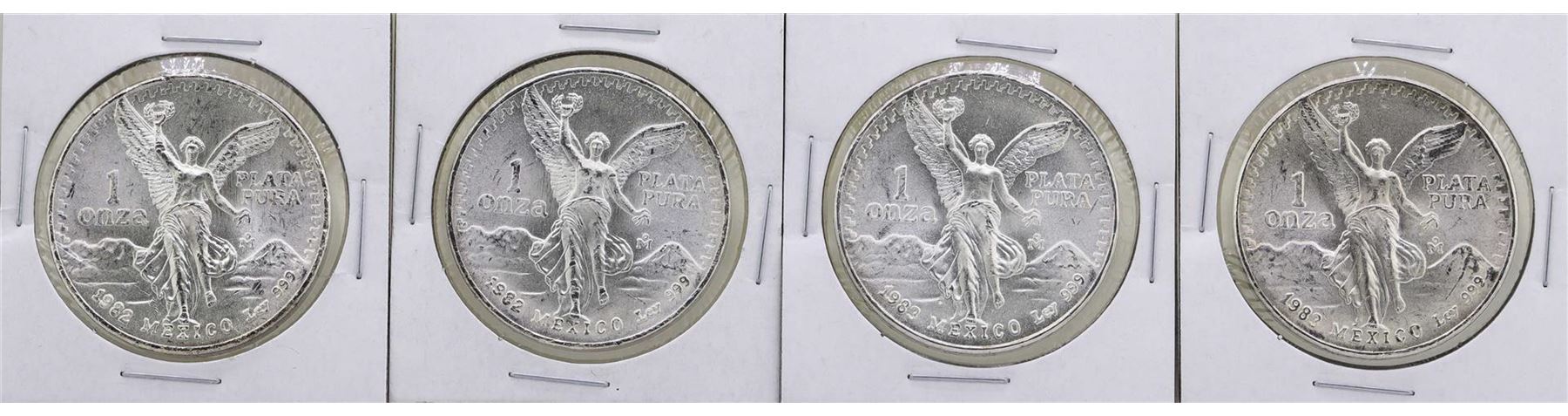 One Lot of (2) 1982Mo & (2) 1983Mo Mexico Silver Libertad Coins.