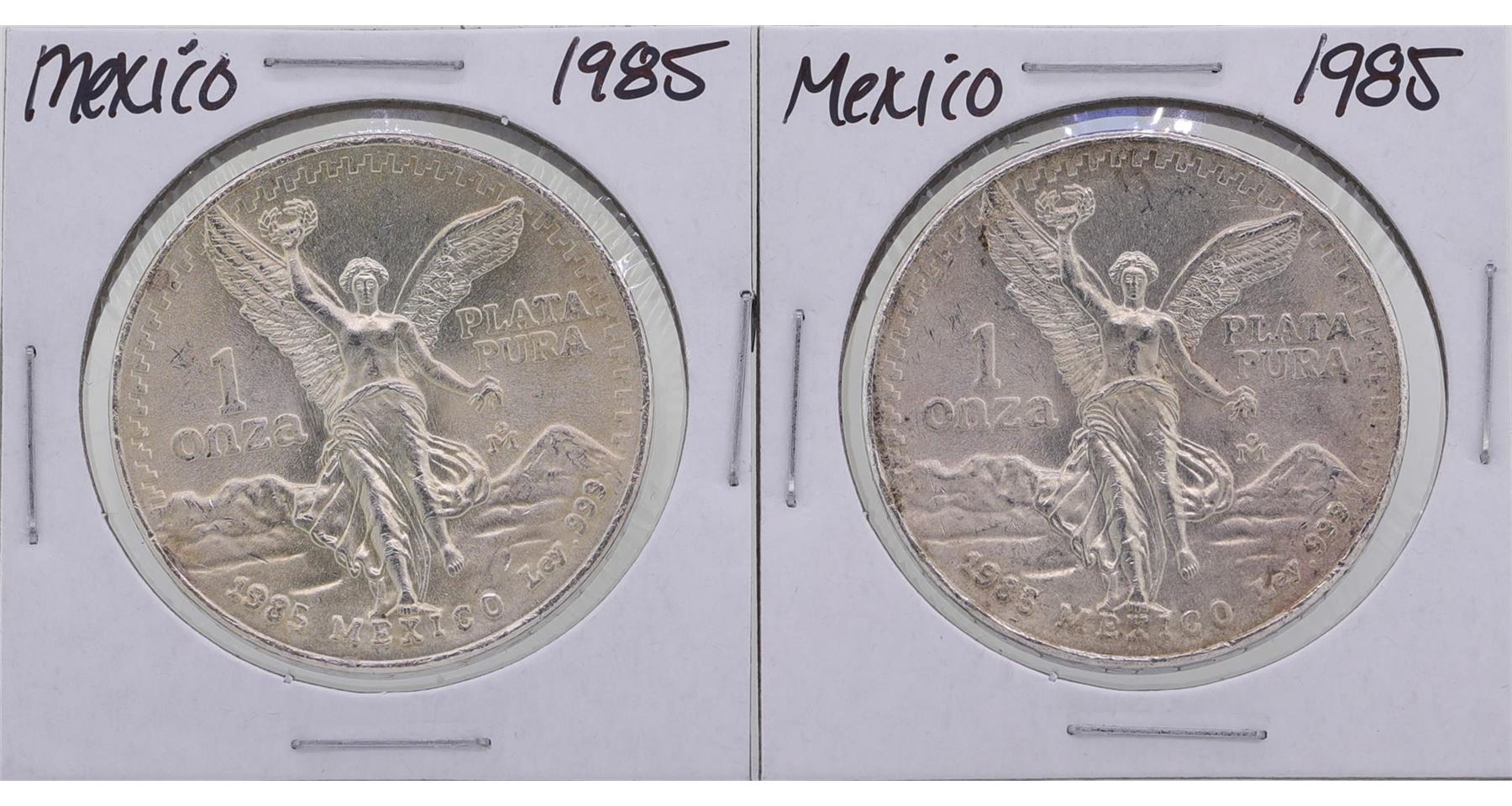 One Lot of (2) 1985 Mexico 1 Oz Liberated Silver Coins.