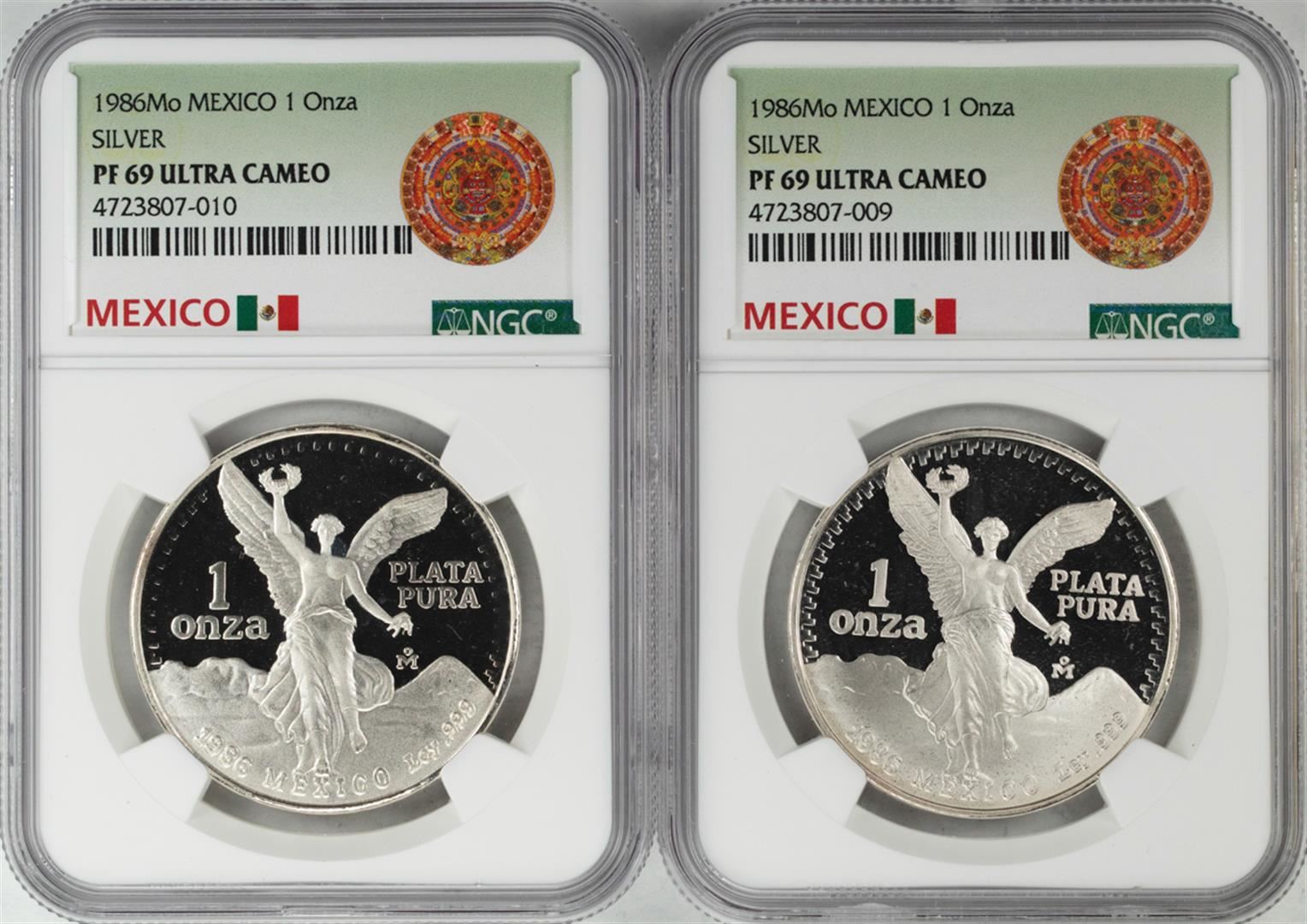Lot of (2) 1986Mo Mexico Proof 1 Onza Libertad Silver Coins NGC PF69 Ultra Cameo